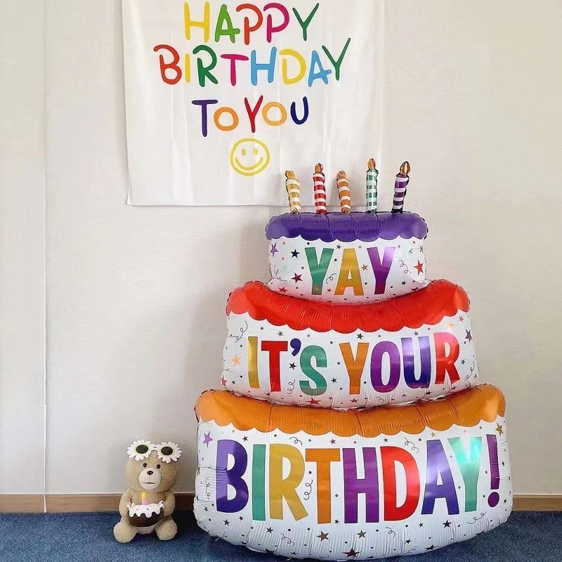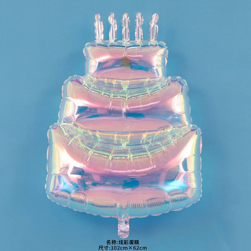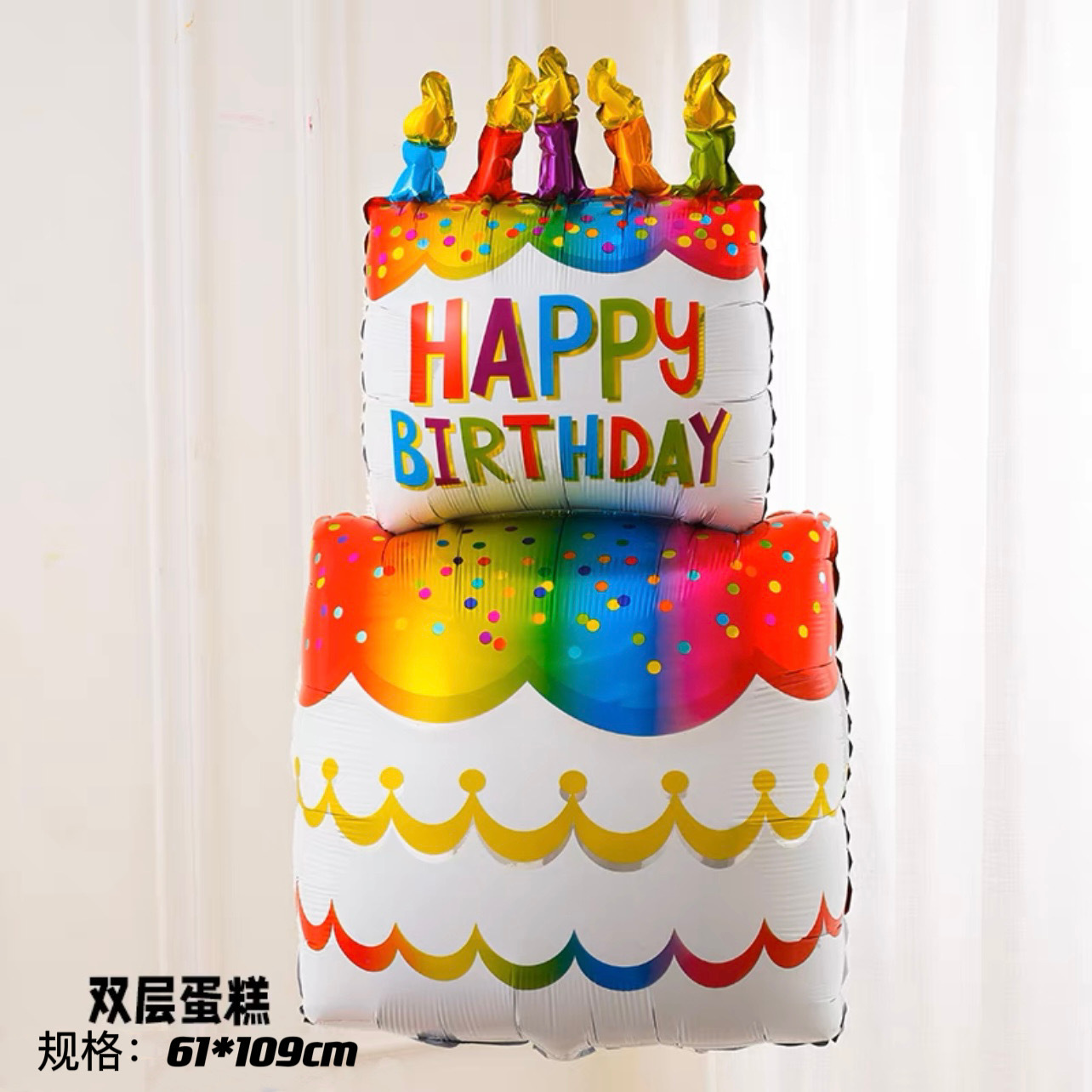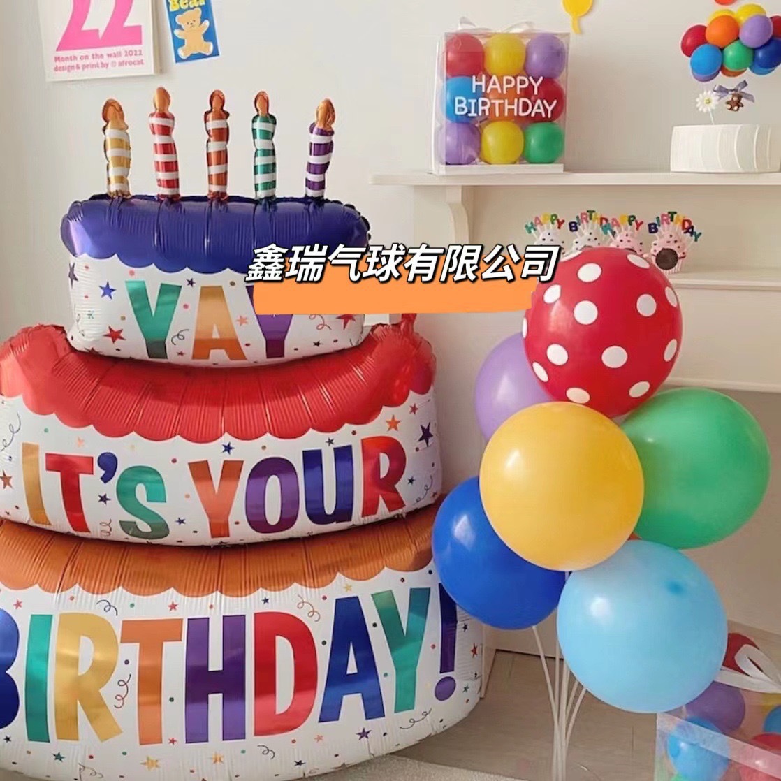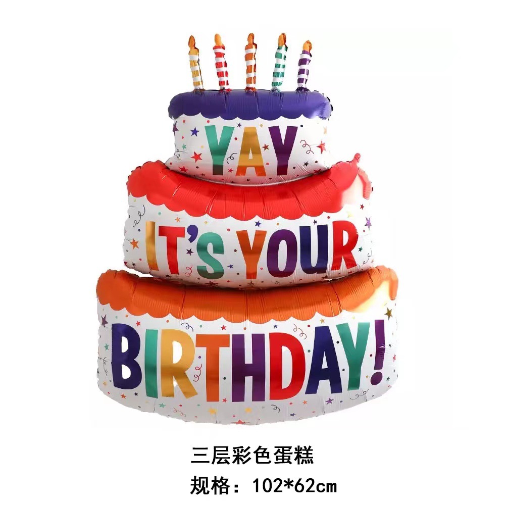 In Hanfeng 다채로운 3 층 생일 케이크 알루미늄 필름 풍선 어린이 생일 파티 장식 레이아웃 풍선 도매