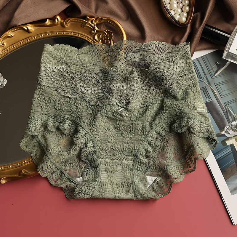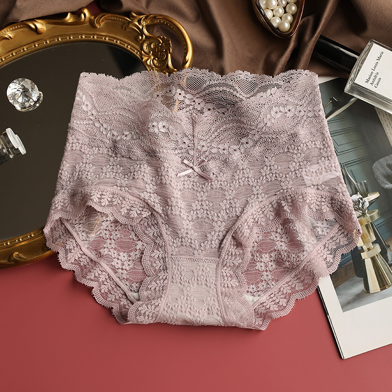봄과 여름 새로운 섹시한 레이스 순수한 욕망 속옷 미드 하이 웨이스트 복부 빛 투명 순면 가랑이 얇은 여성 여행스토어 가기