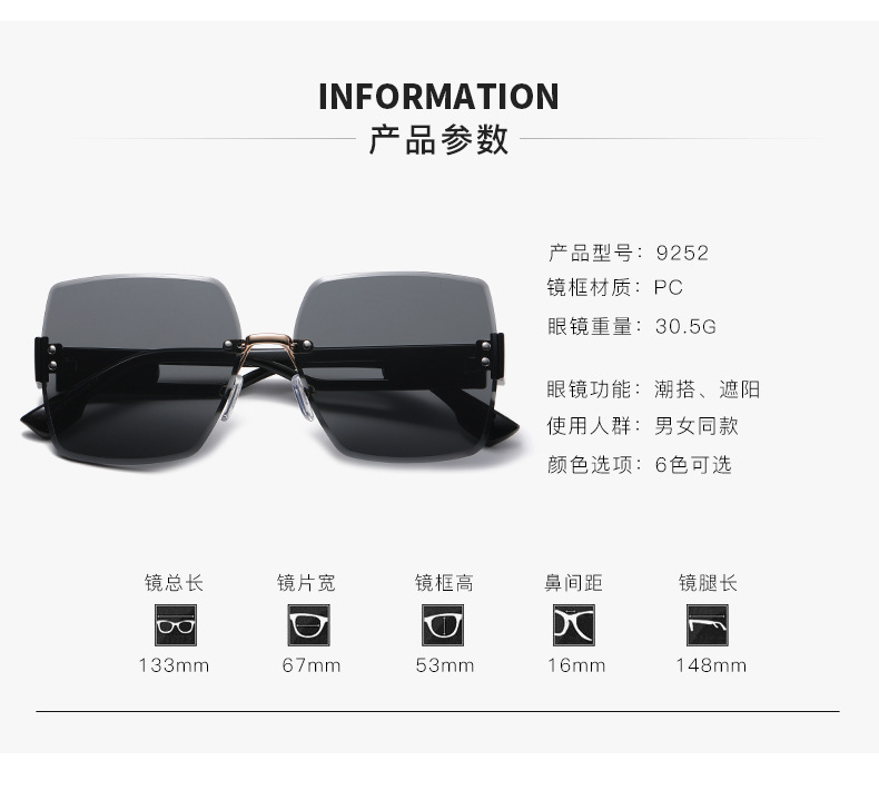 한국 스타일 패션 여성용 신상 선글라스 패션 인스 인기 모델 안경 자외선 차단 반짝이 무테 선글라스