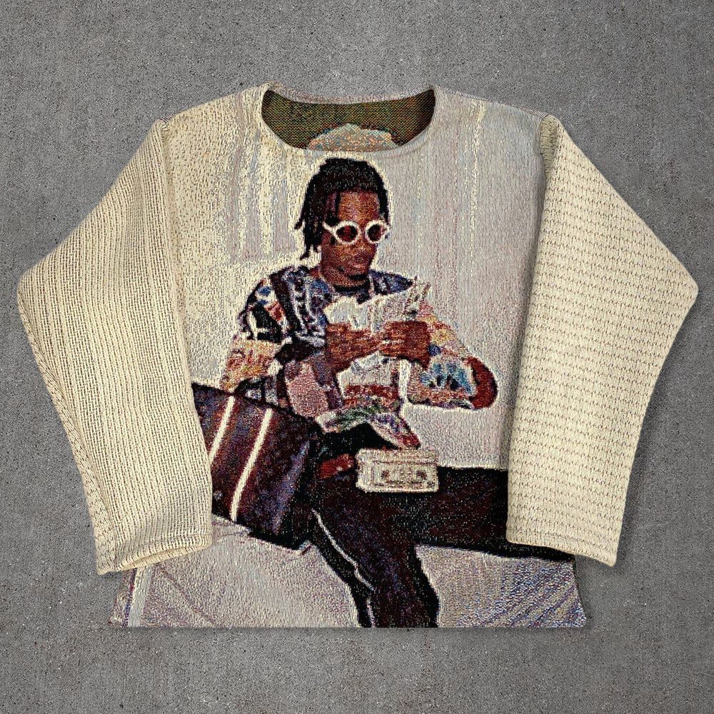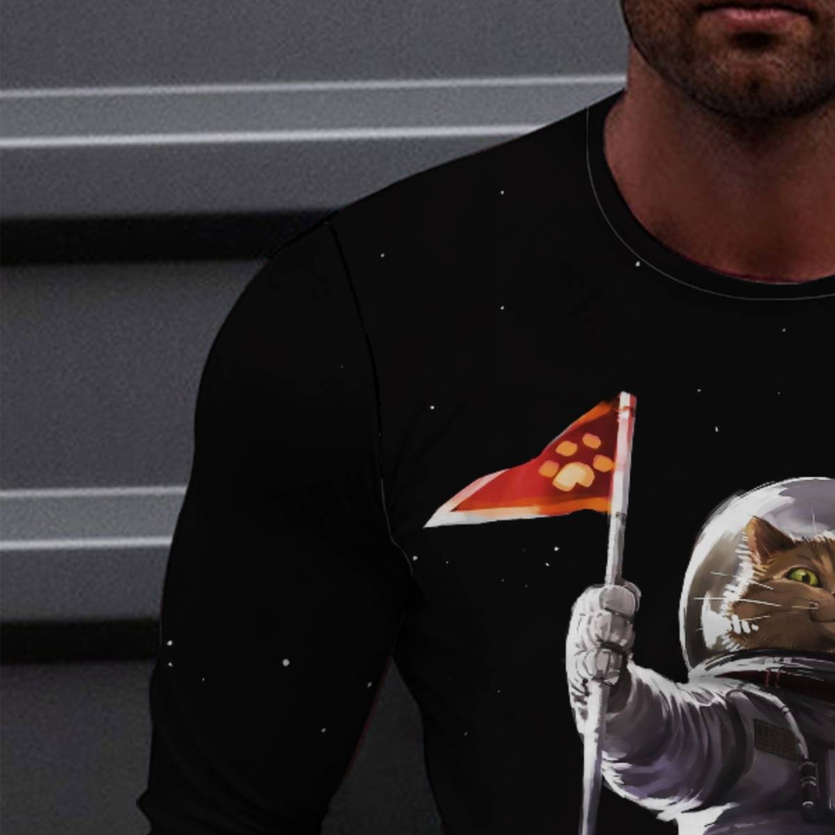2022速卖通跨境新款春秋3D数码印花猫猫宇航员男休闲宽松长袖T恤