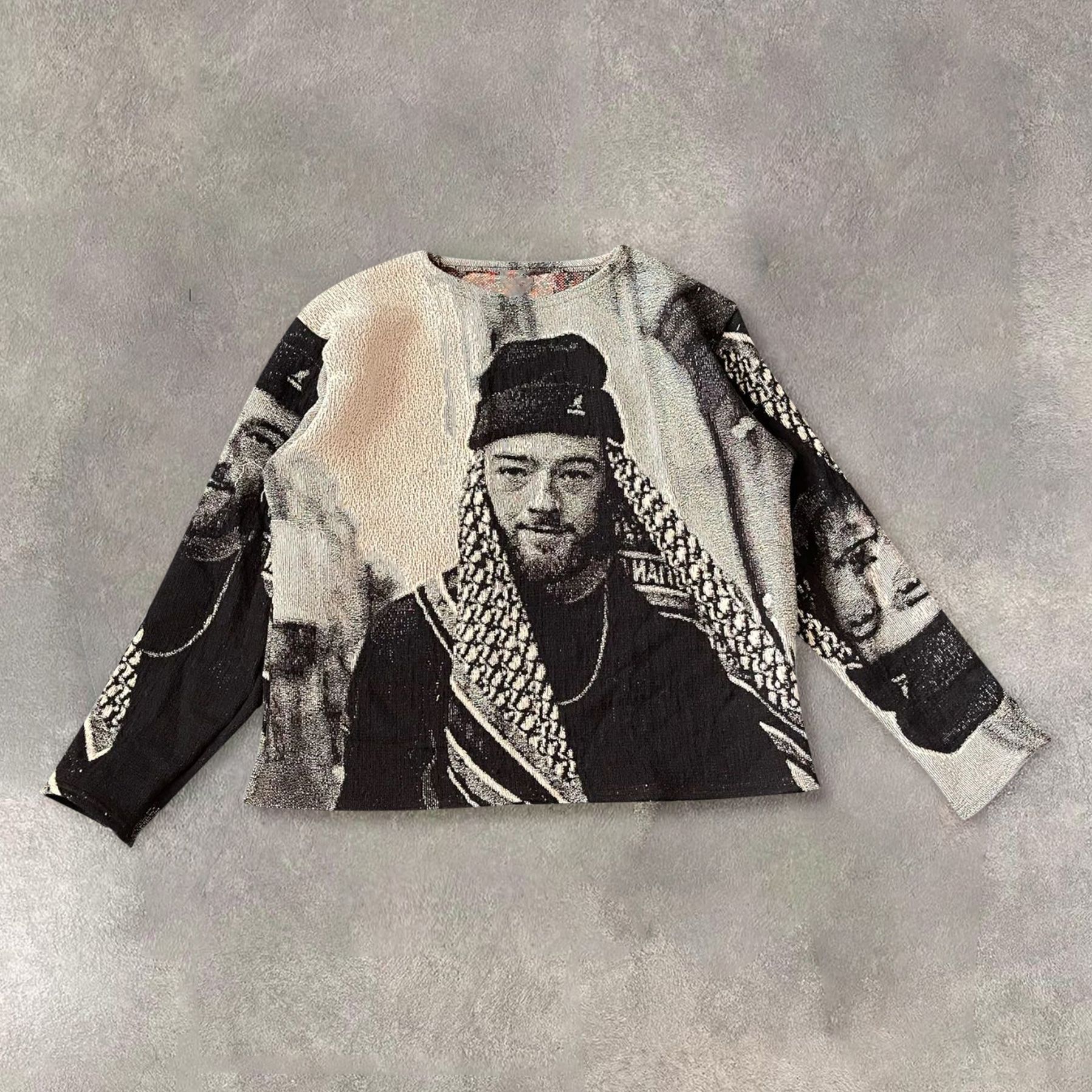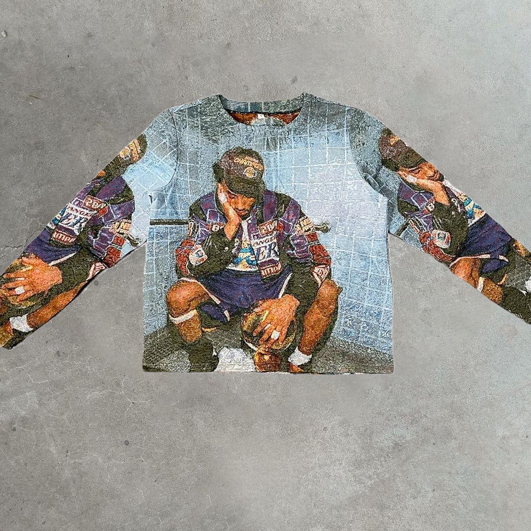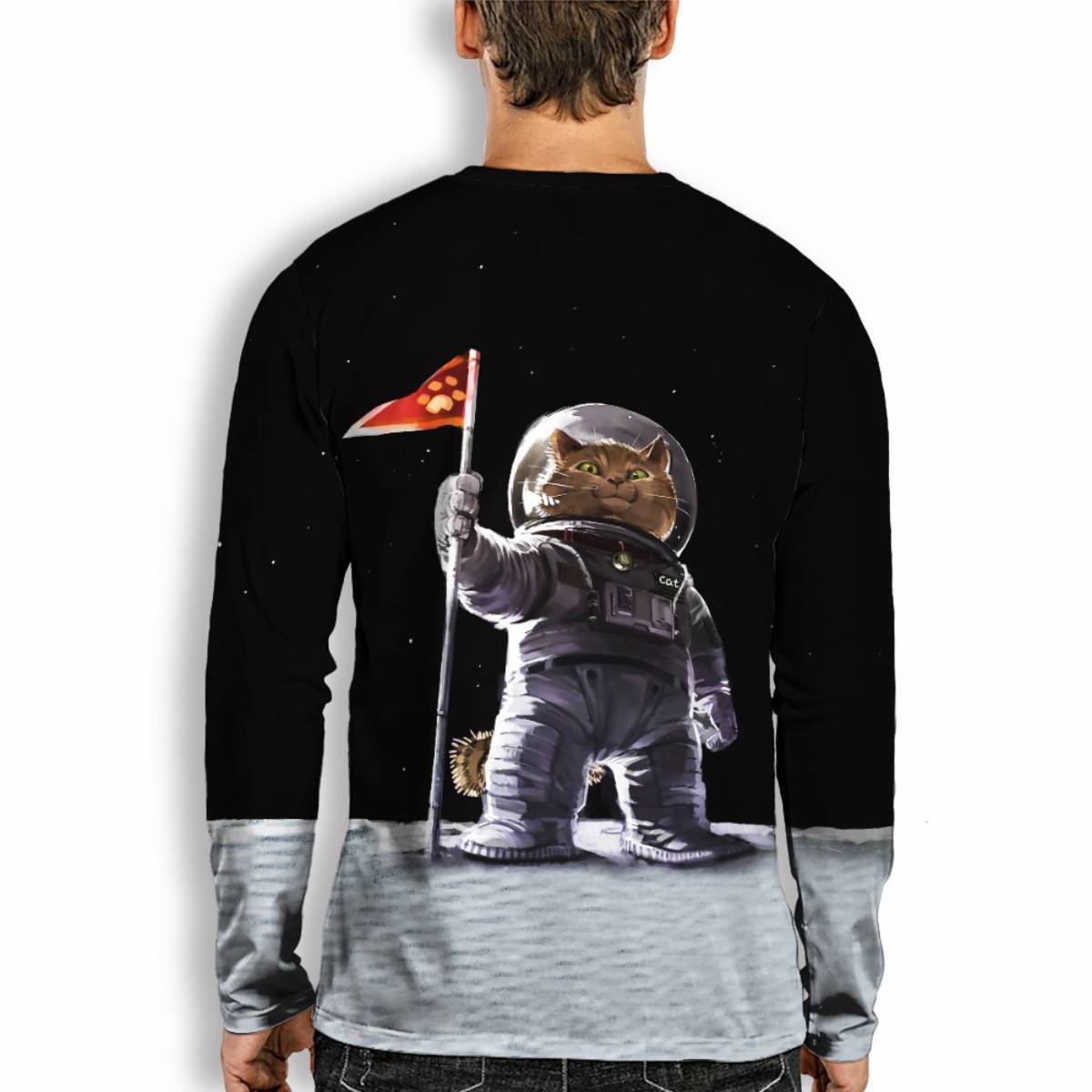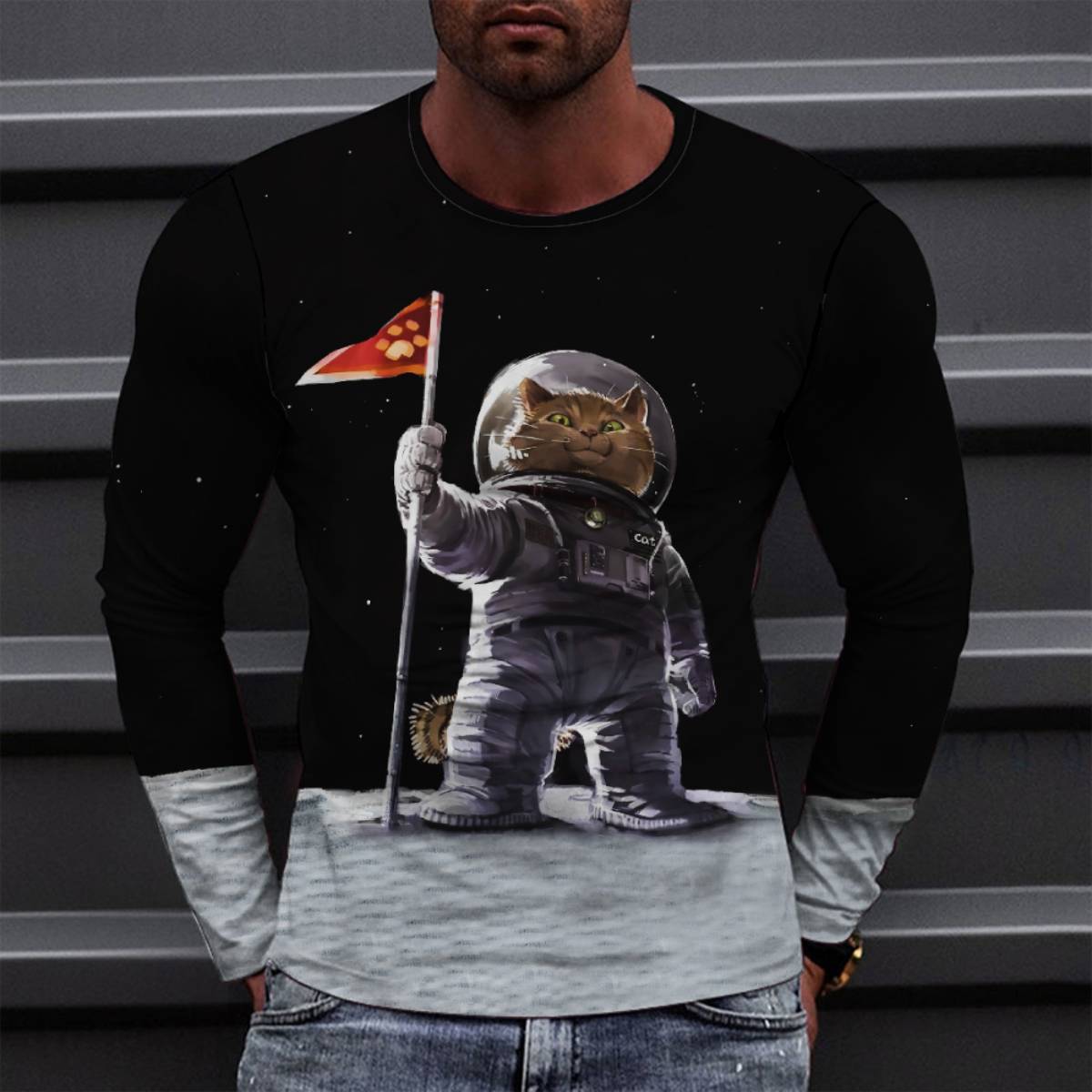 2024 AliExpress 국경 새 봄과 가을 3D 디지털 인쇄 고양이 우주 비행사 남성 캐주얼 느슨한 긴 소매 티셔츠