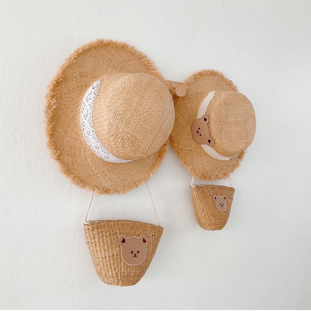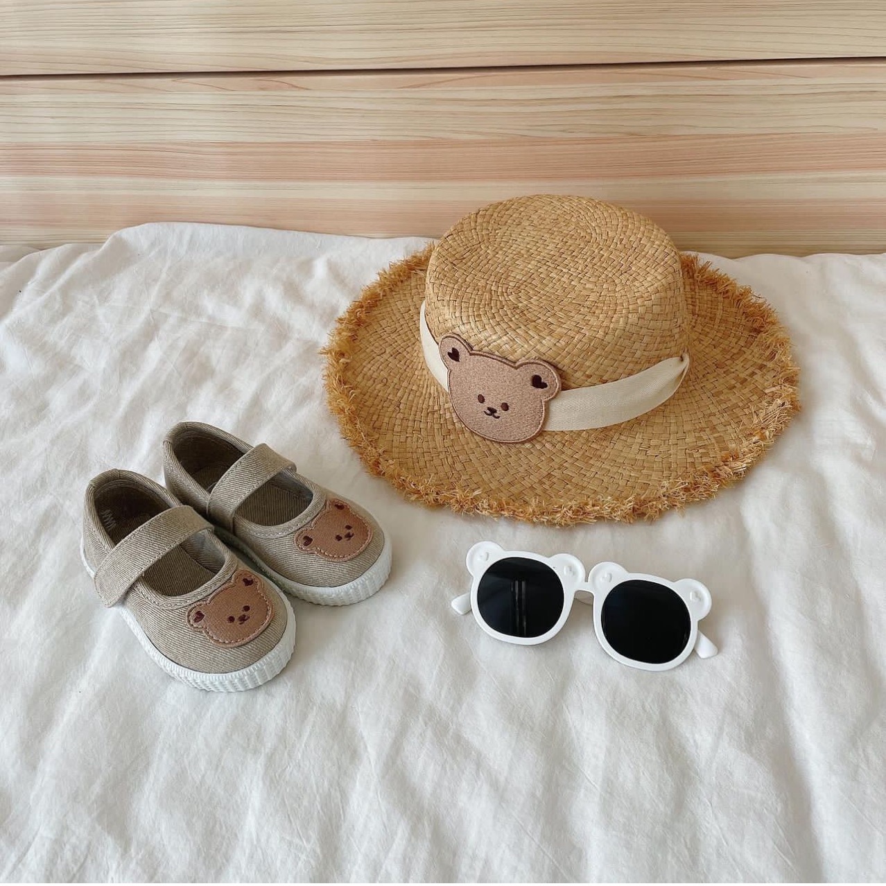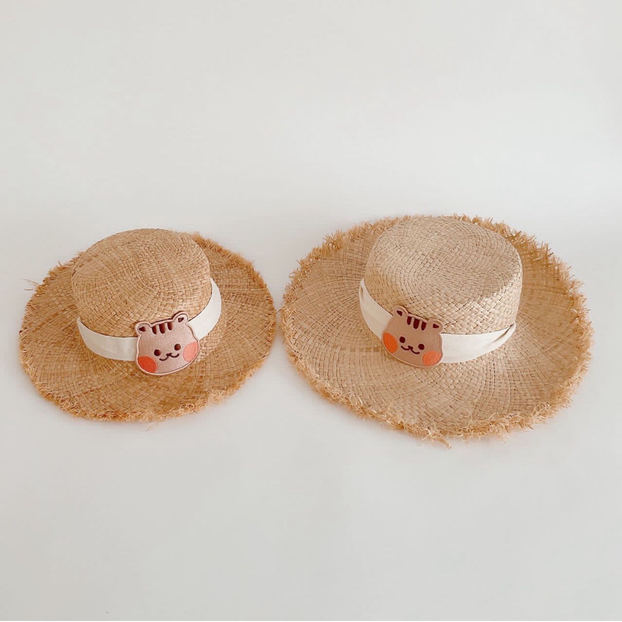 한국 스타일 만화 동물 부모-어린이 여행 자외선 차단제 밀짚 모자 어린이의 큰 챙 짠 봄과 가을 스타일스토어 가기
