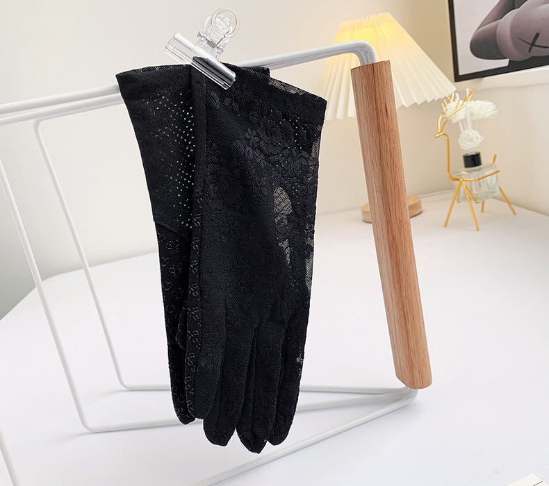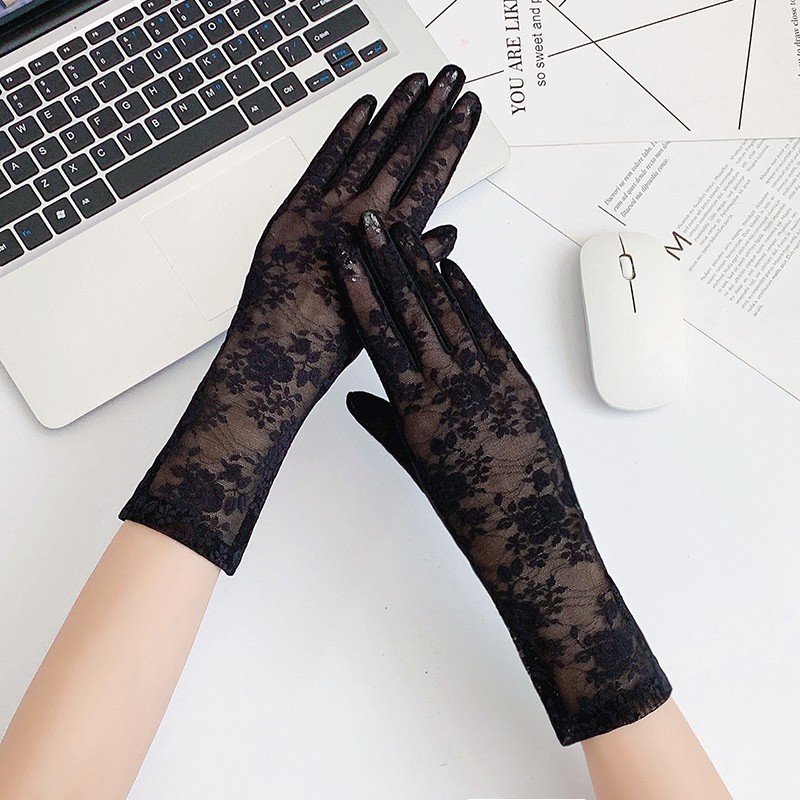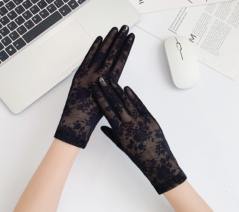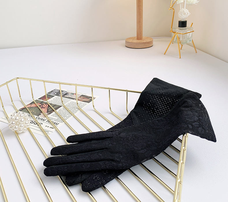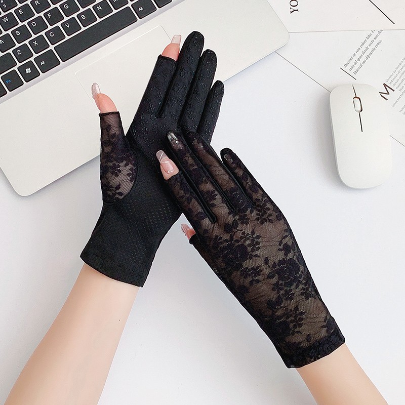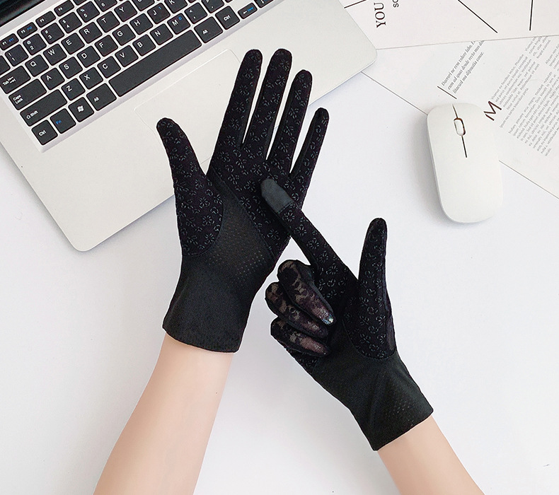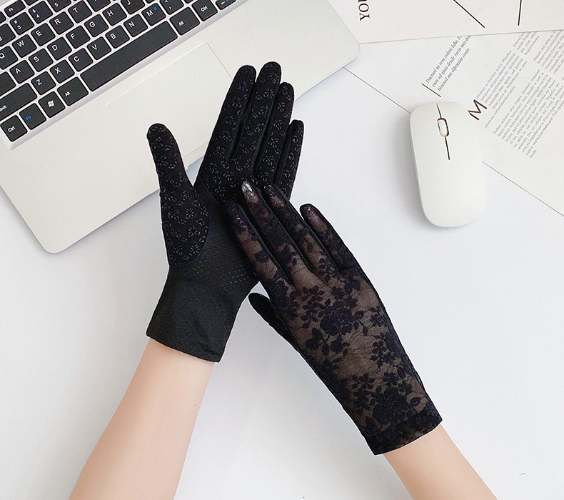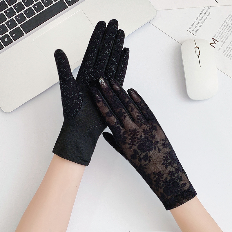 여성용 신상 여름 자외선 차단 장갑, 운전용 미끄럼 방지 터치스크린 얇은 아이스 실크 신축성 통기성 우아한 레이스 장갑