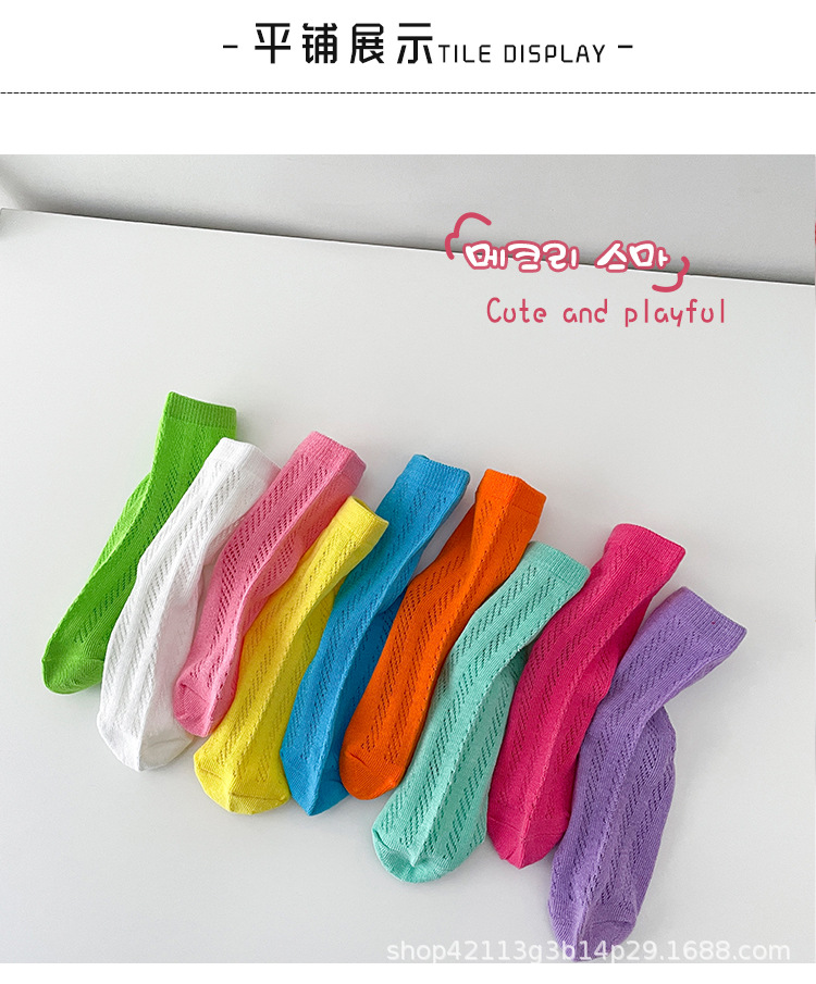 캔디 컬러 단색 어린이 여름 메쉬 양말 얇은 소녀 아기 소녀 아기 양말 봄과 여름 새 양말 배치스토어 가기