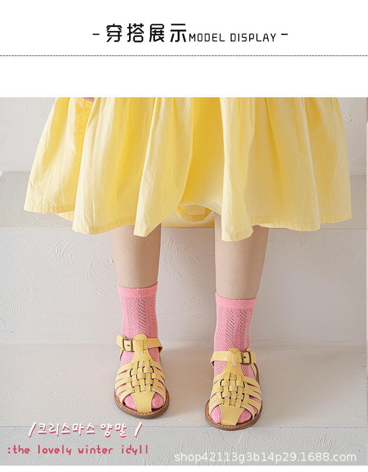 캔디 컬러 단색 어린이 여름 메쉬 양말 얇은 소녀 아기 소녀 아기 양말 봄과 여름 새 양말 배치