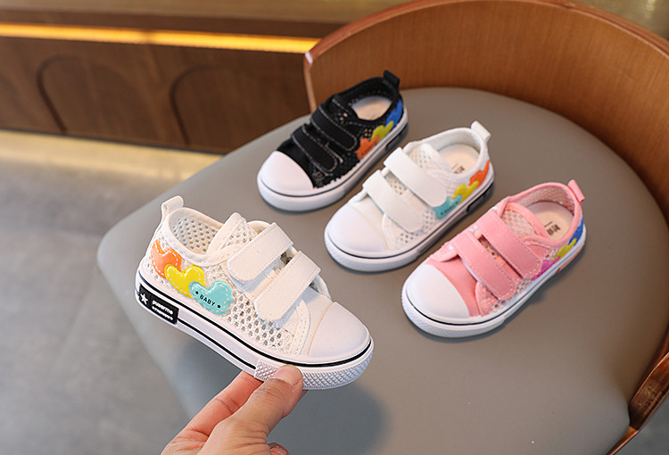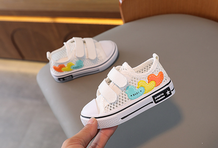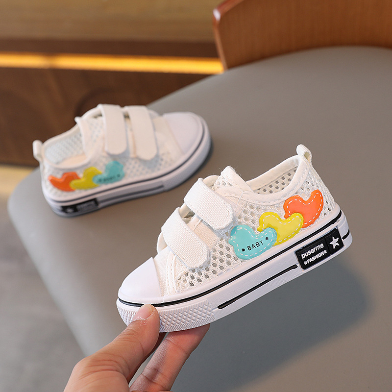 2023 어린이 통기성 메쉬 캔버스 신발 미끄럼 방지 부드러운 밑창 솔리드 밑창 1-7 세 3 소년 소녀 아기 흰색 신발 여름스토어 가기