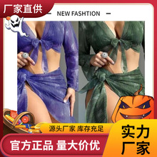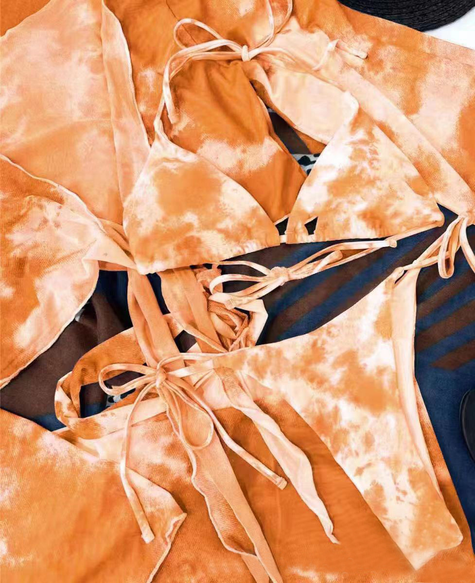 2024 새로운 유럽 및 미국 크로스 보더 스플릿 수영복 여성 스플릿 타이 염료 섹시한 4 피스 비키니 비키니