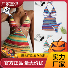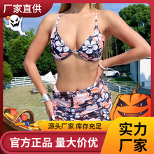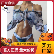 2024 새로운 유럽 및 미국 크로스 보더 스플릿 수영복 여성 스플릿 타이 염료 섹시한 4 피스 비키니 비키니스토어 가기