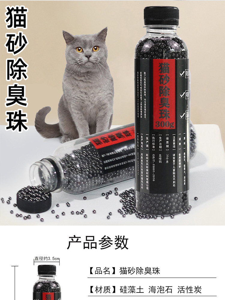 고양이 쓰레기 탈취제 구슬 탈취제 활성탄 먼지없는 병 300g 고양이 쓰레기 동반자 탈취제 고양이 용품스토어 가기
