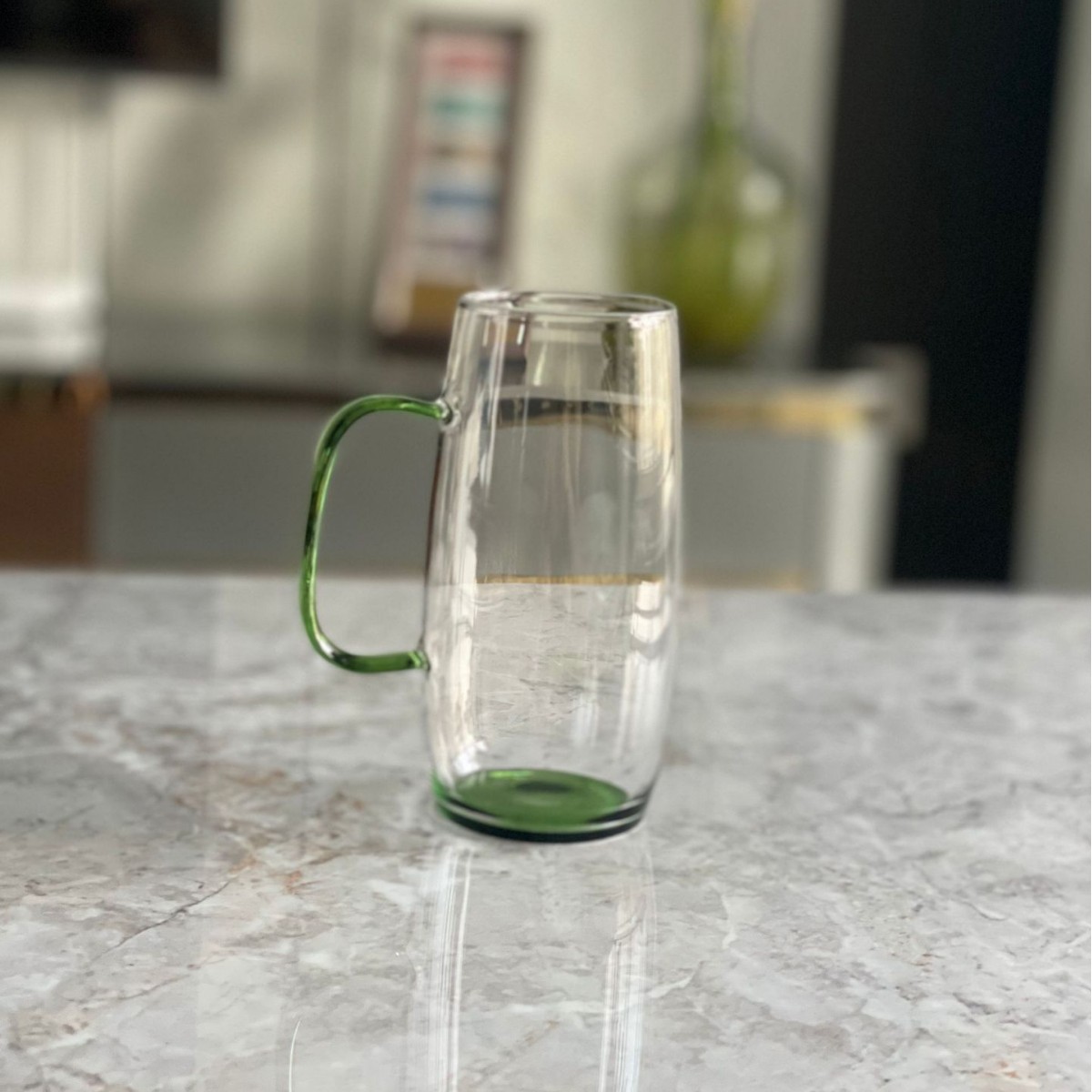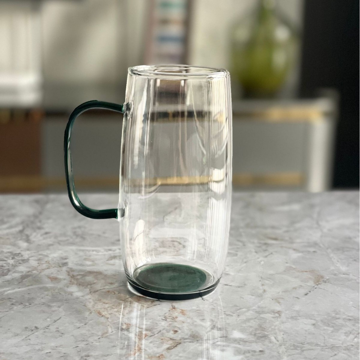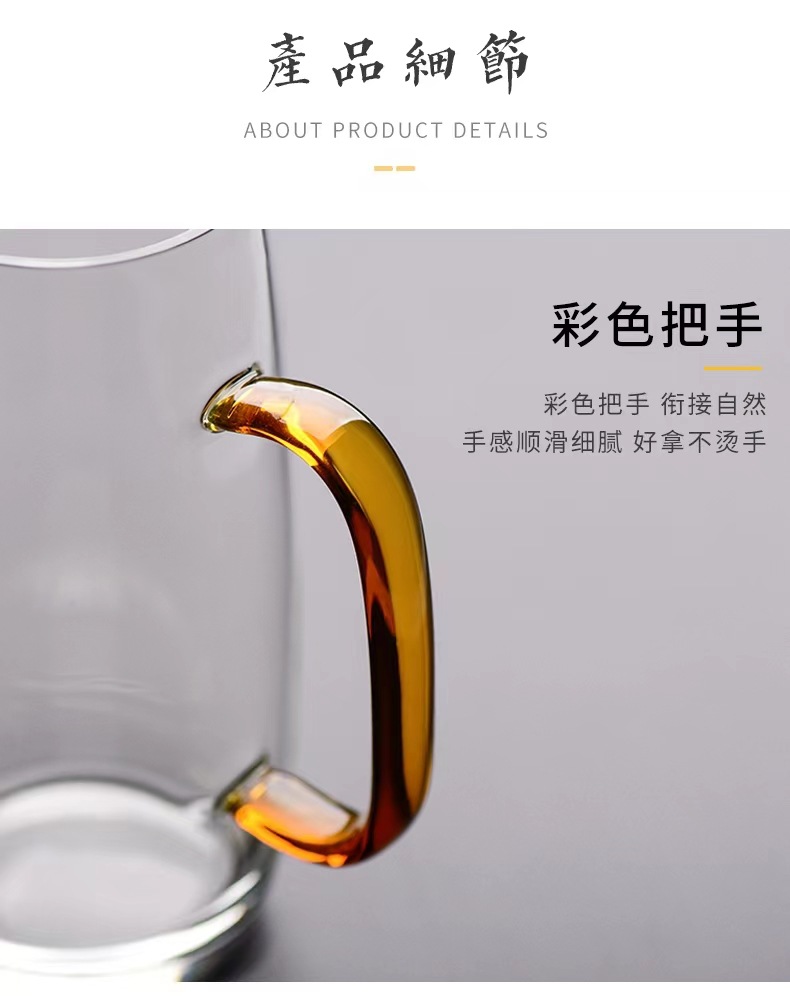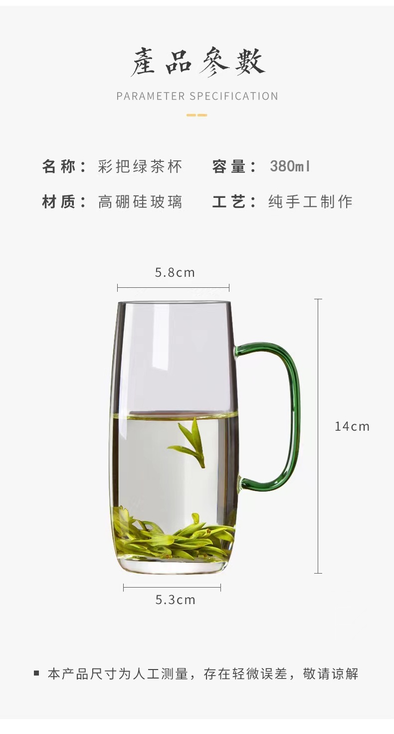 남성과 여성을위한 높은 붕규산 두꺼운 열대 손잡이 녹차 컵 사무실 유리 Longjing Houkui 차 컵