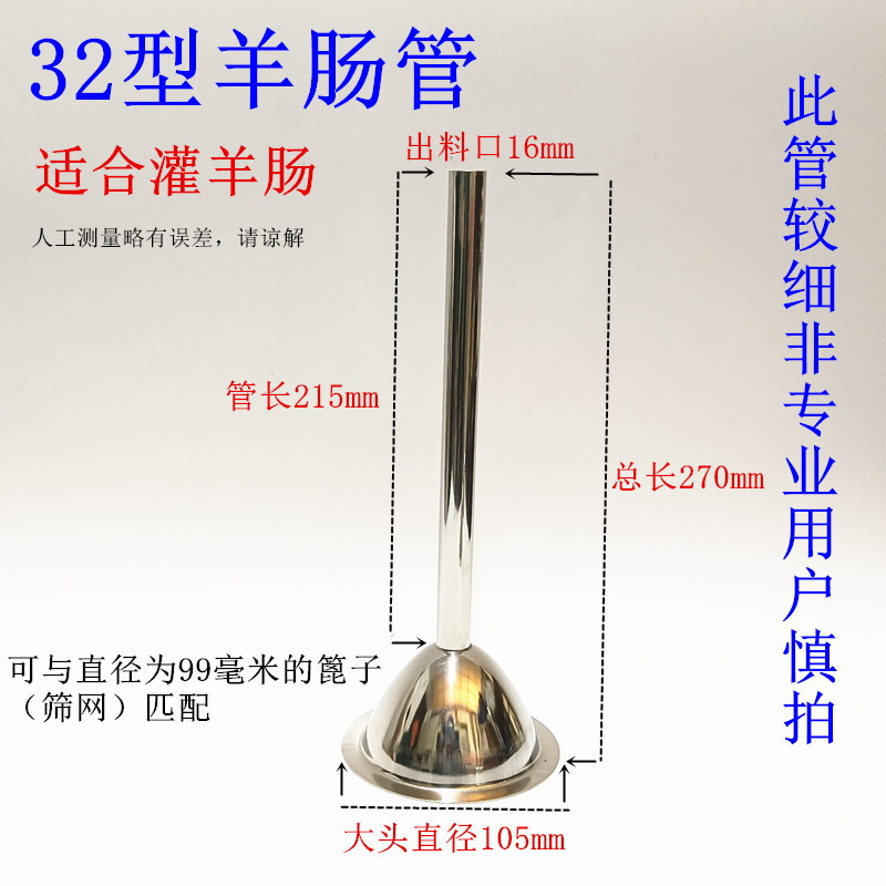 두꺼운 스테인레스 스틸 장 튜브 수동 소시지 충전 장치 깔때기 입 고기 분쇄기 돼지 케이싱 벨 입 고기 분쇄기 액세서리