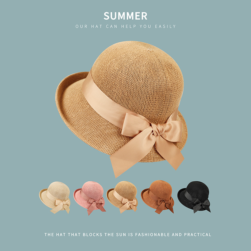 모자 여성용 봄과 여름 야외 여행 컬링 된 밀짚 모자 자외선 차단제 어부 모자 비치 멋진 모자 분지 모자 모든 경기 태양 모자