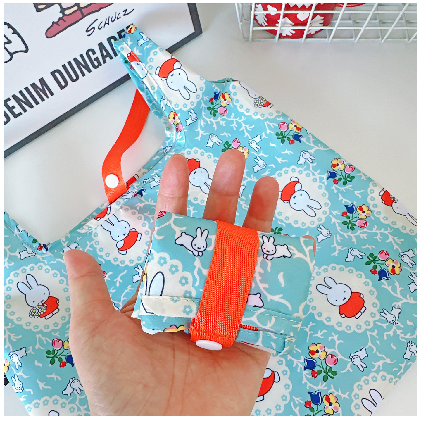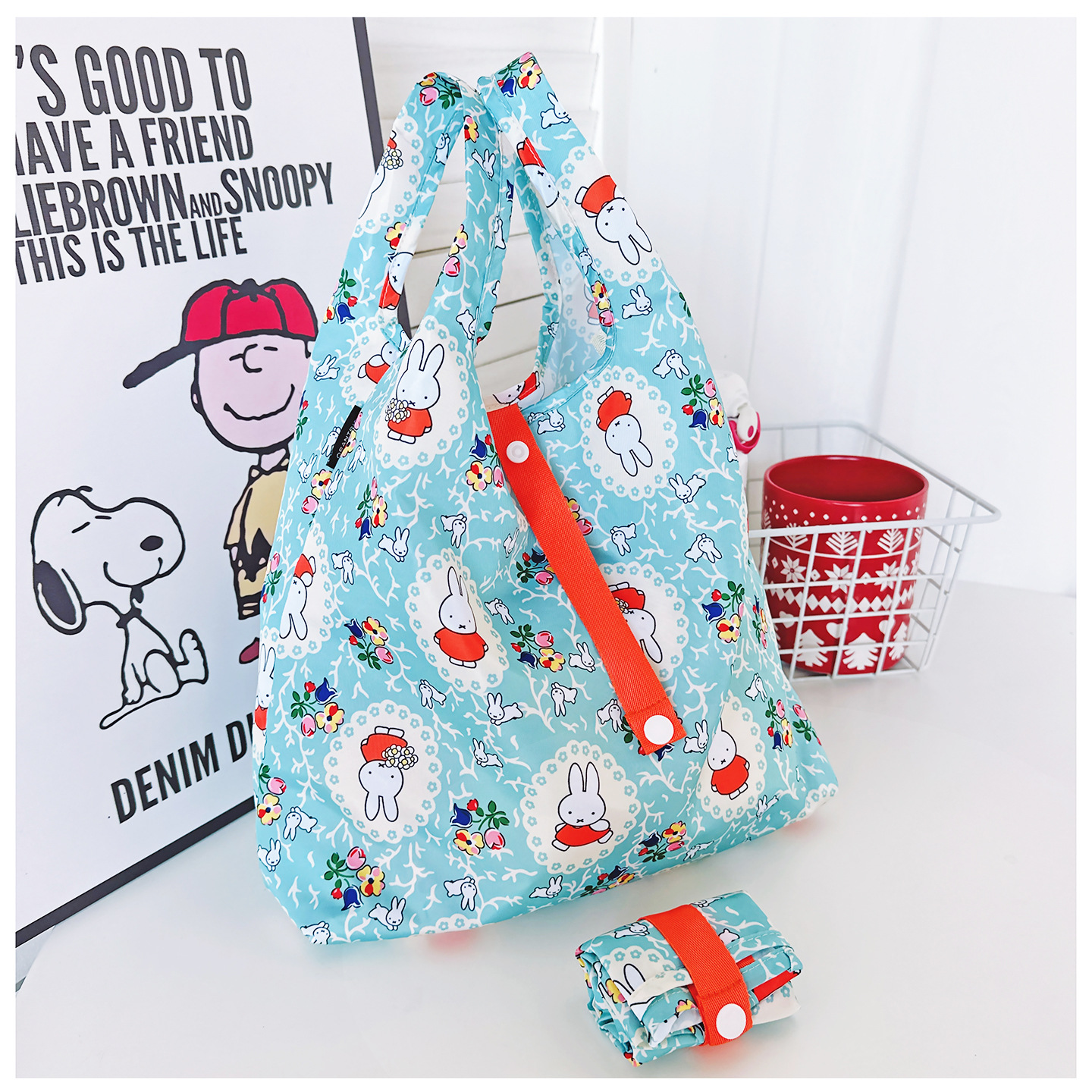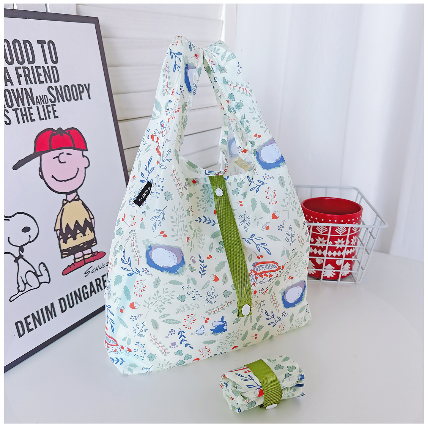 일본 만화 미니 친환경 쇼핑백 핸드백 천 가방 도시락 가방 접이식 초경량 휴대용 잡화 선물