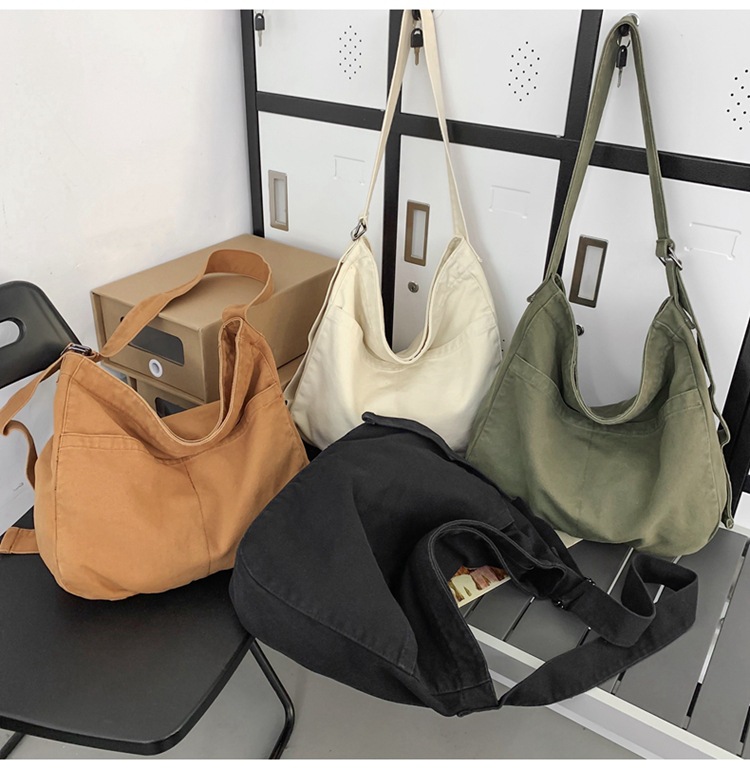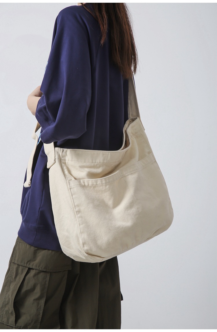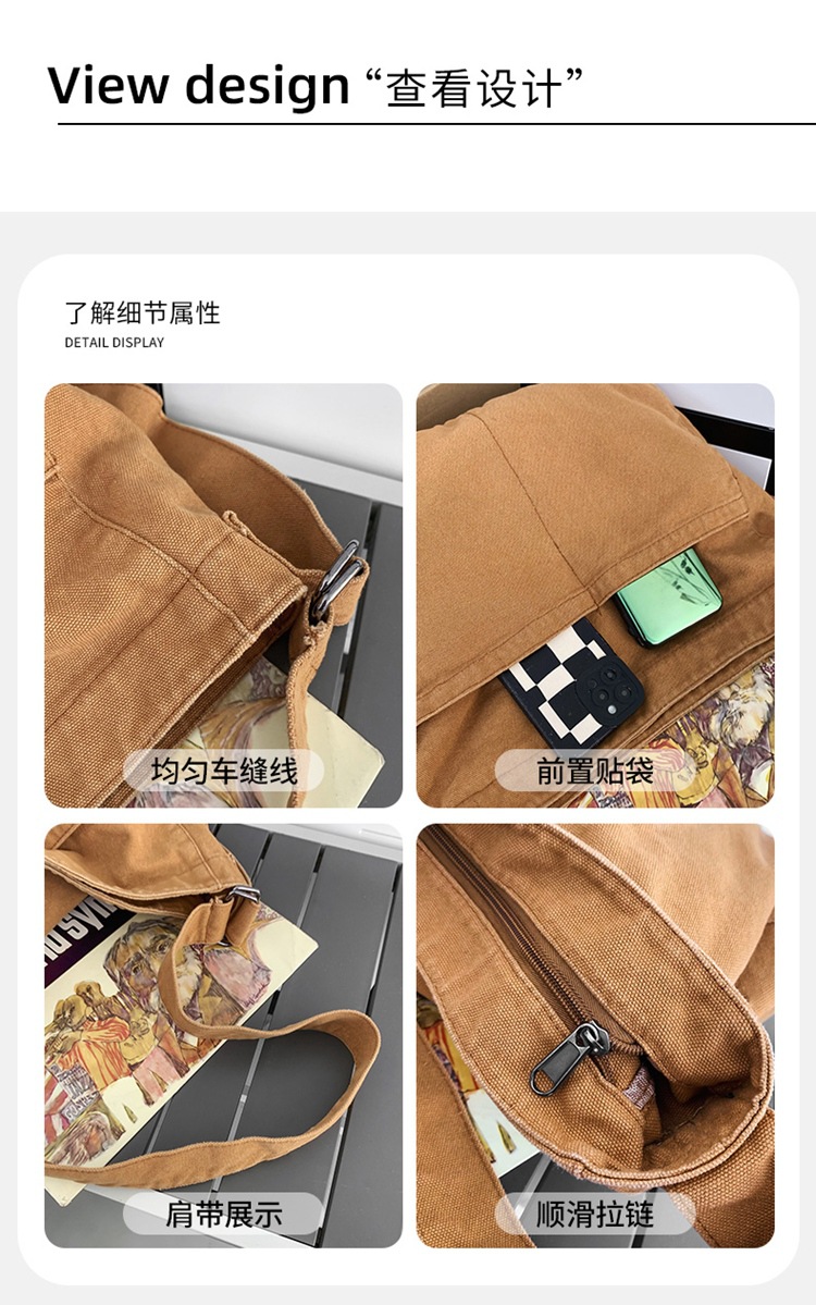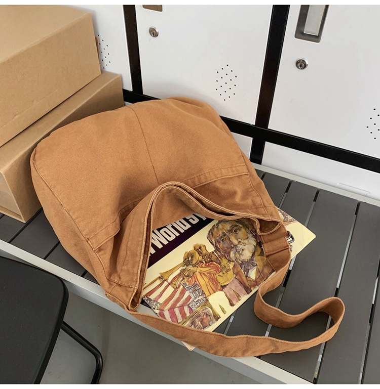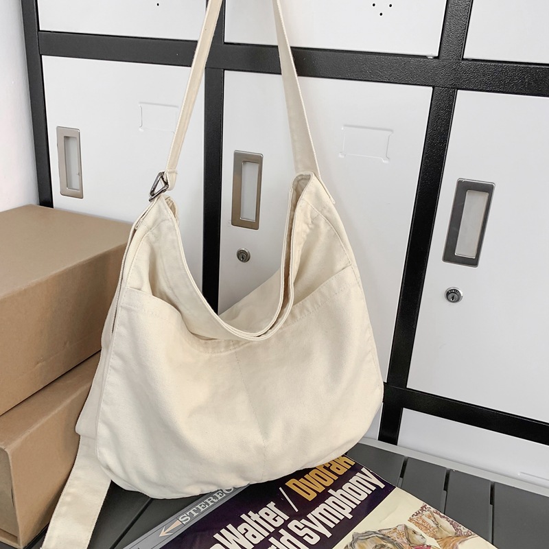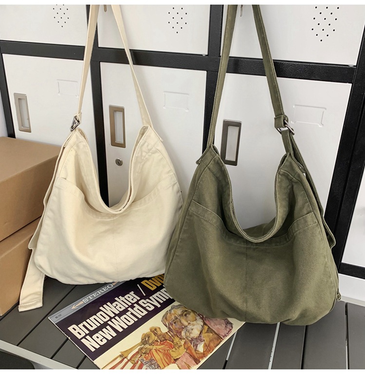 여성용 크로스 바디 백 수제 대용량 게으른 스타일 문학적이고 간단한 캔버스 가방 2024 새로운 대학생 클래스 가방스토어 가기
