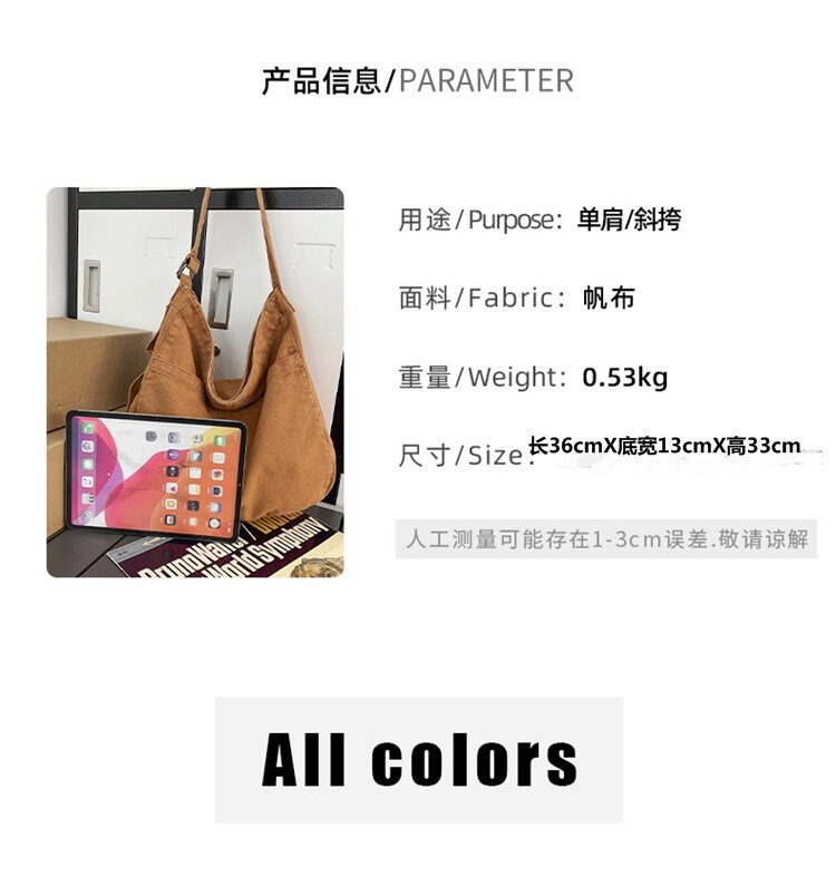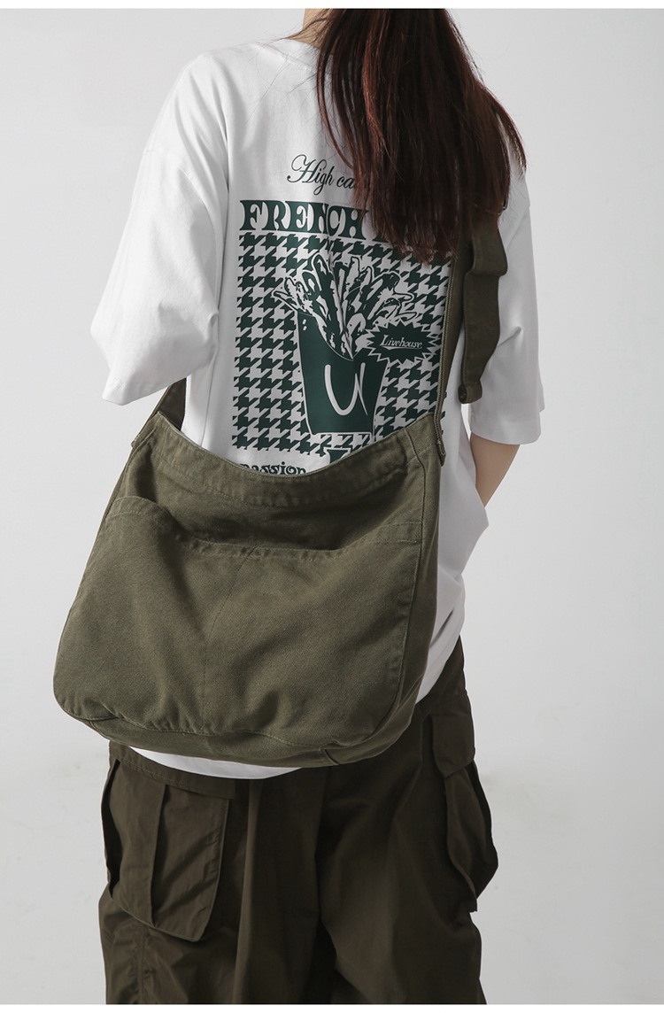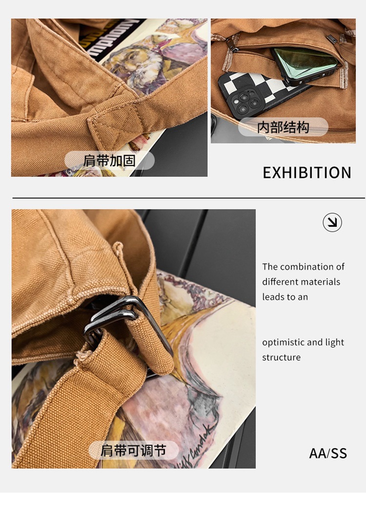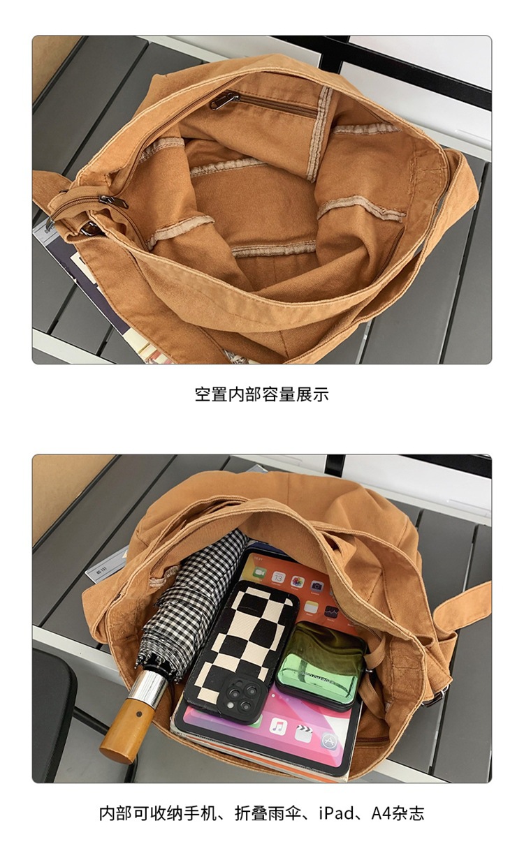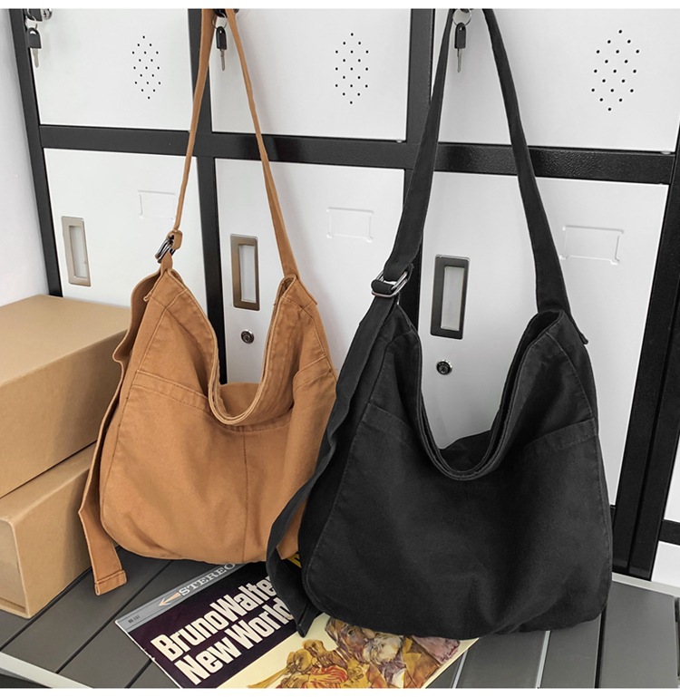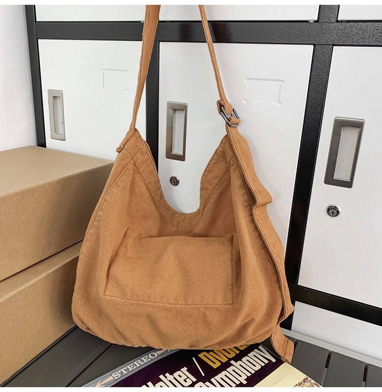 여성용 크로스 바디 백 수제 대용량 게으른 스타일 문학적이고 간단한 캔버스 가방 2024 새로운 대학생 클래스 가방스토어 가기