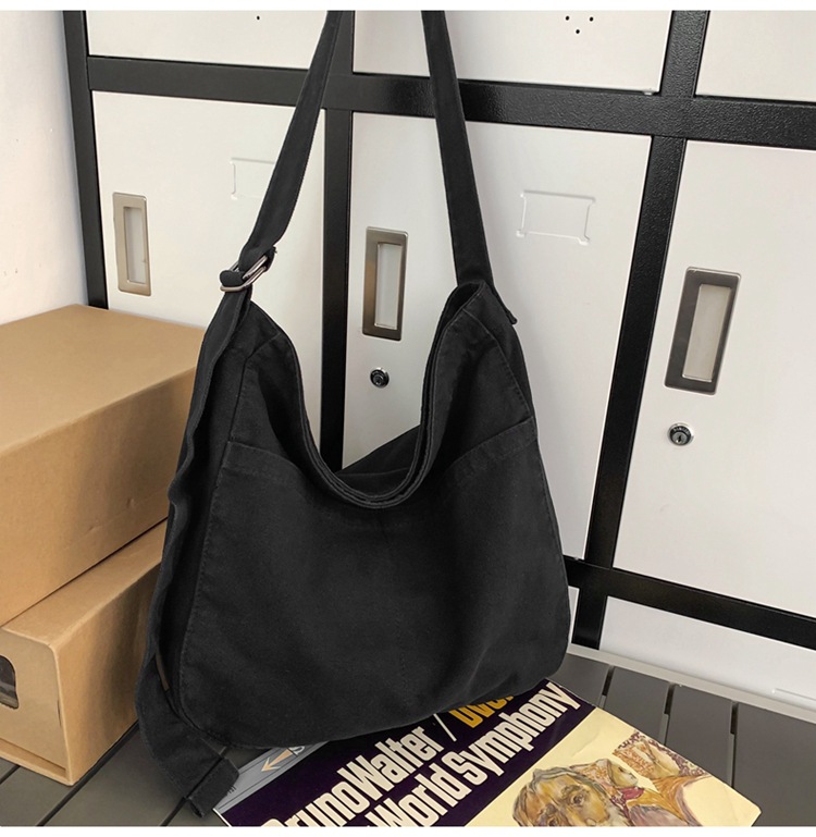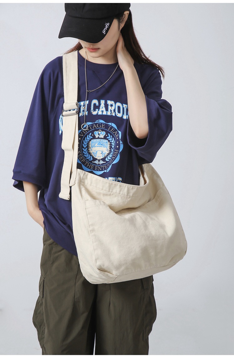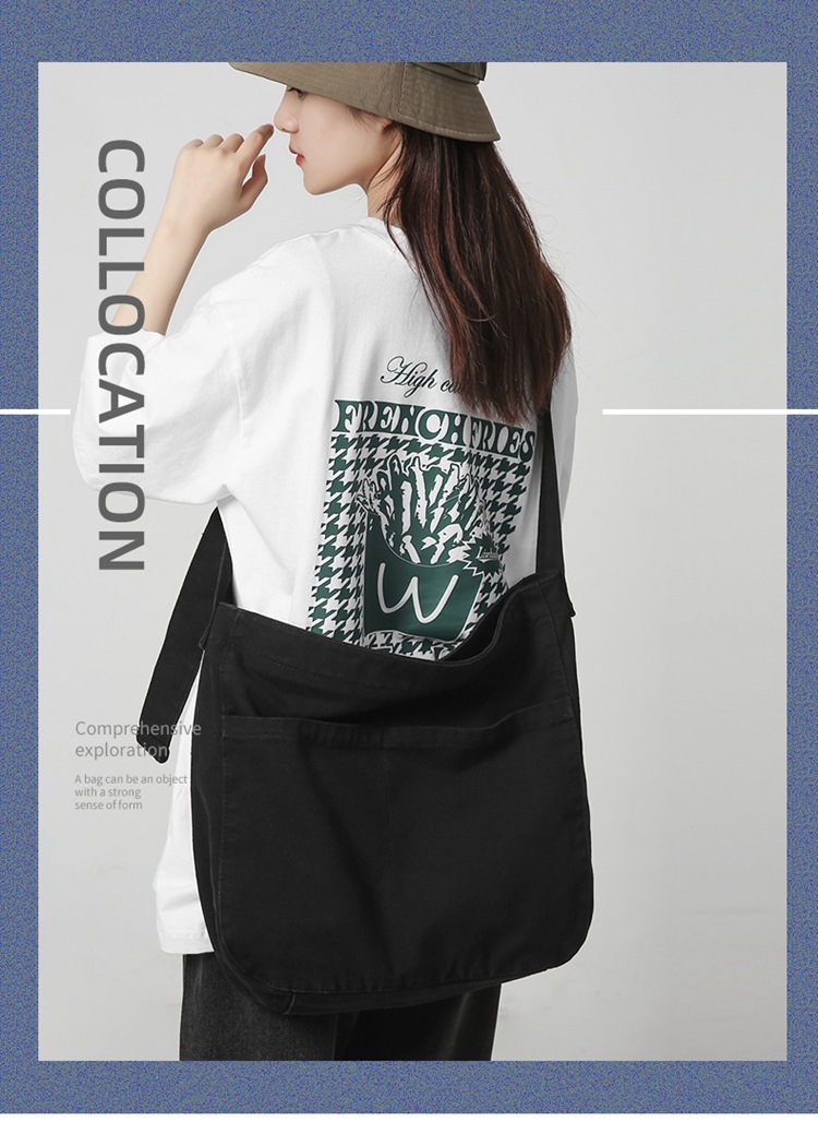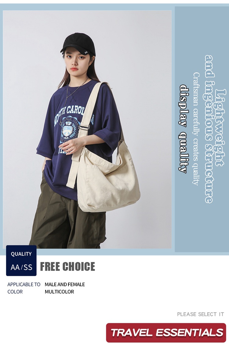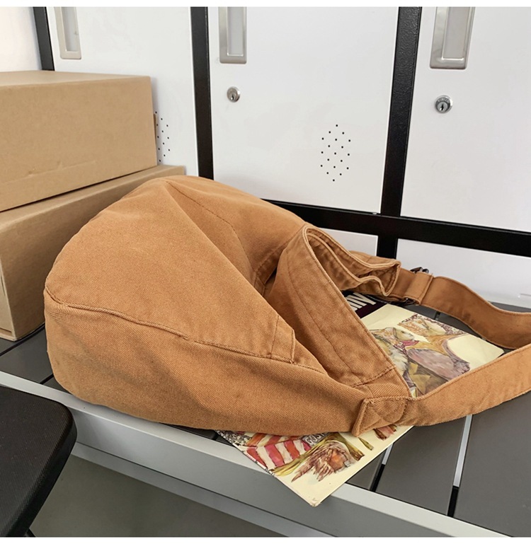 여성용 크로스 바디 백 수제 대용량 게으른 스타일 문학적이고 간단한 캔버스 가방 2024 새로운 대학생 클래스 가방