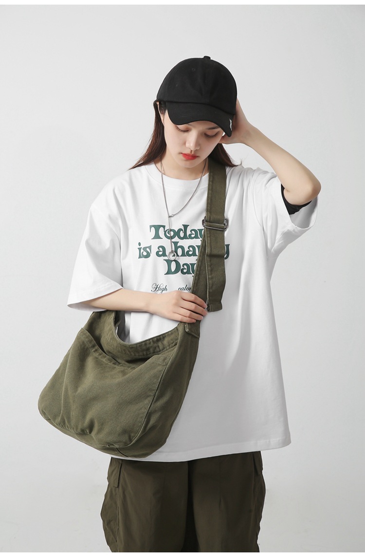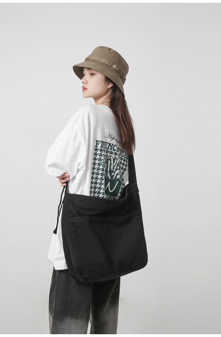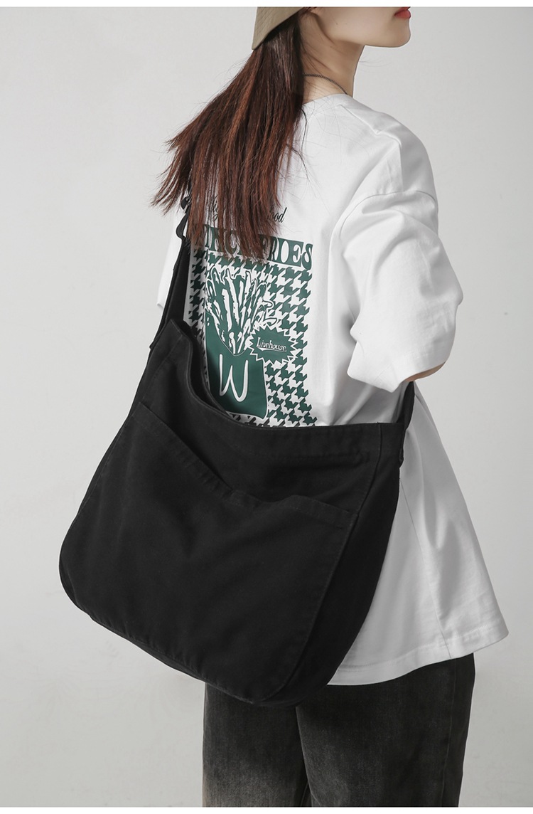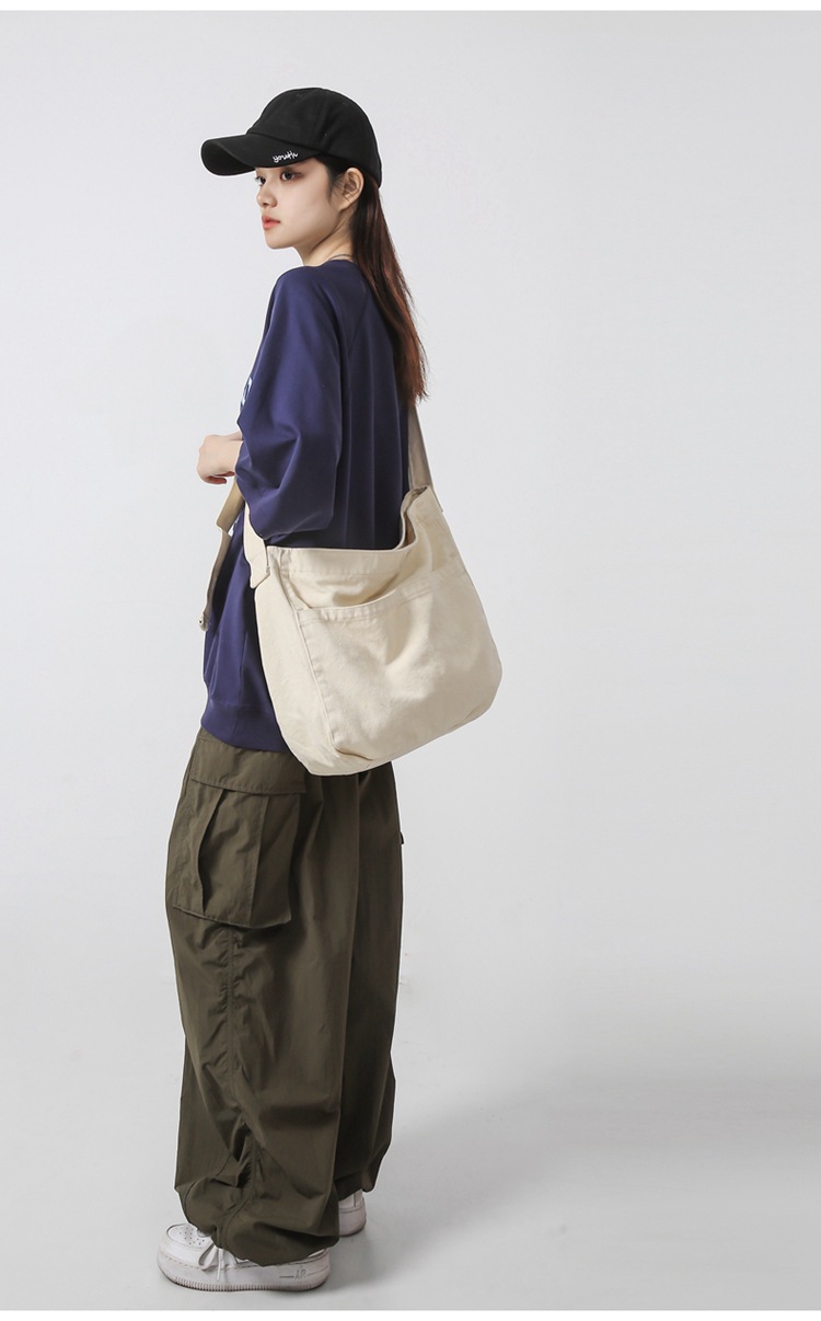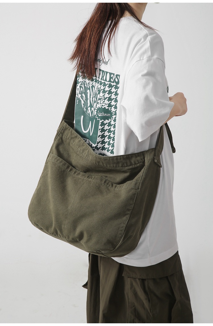 여성용 크로스 바디 백 수제 대용량 게으른 스타일 문학적이고 간단한 캔버스 가방 2024 새로운 대학생 클래스 가방