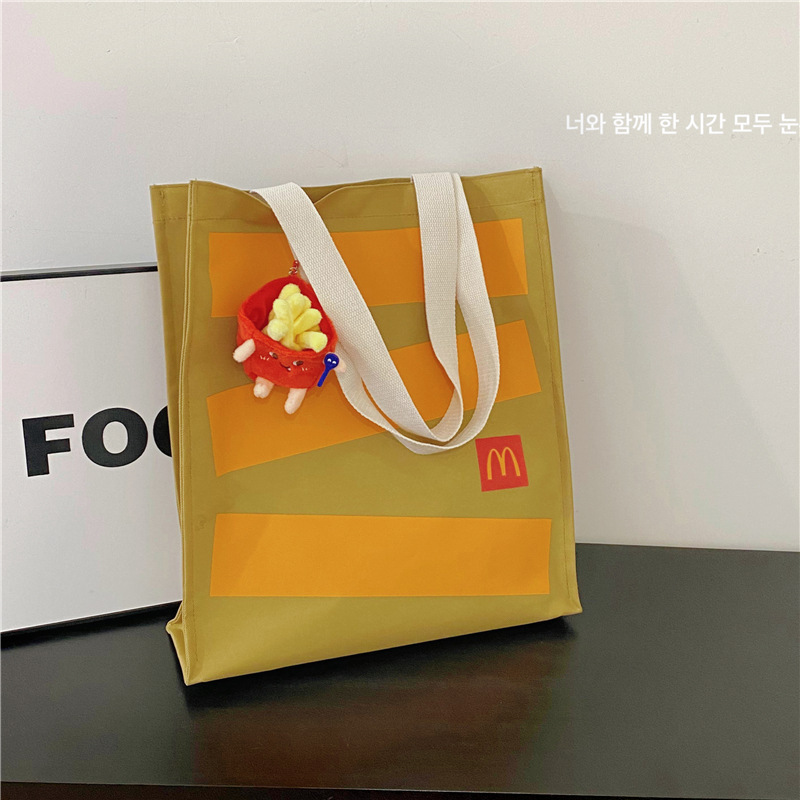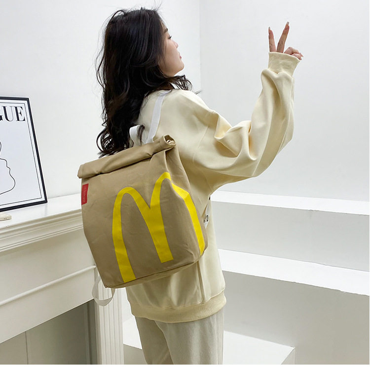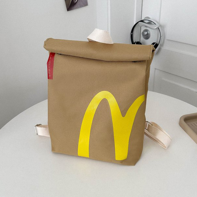 맥도날드 학교 가방 도매 2025 새로운 편지 인쇄 종이 가방 배낭 성격 대학생 어깨 가방 대외 무역