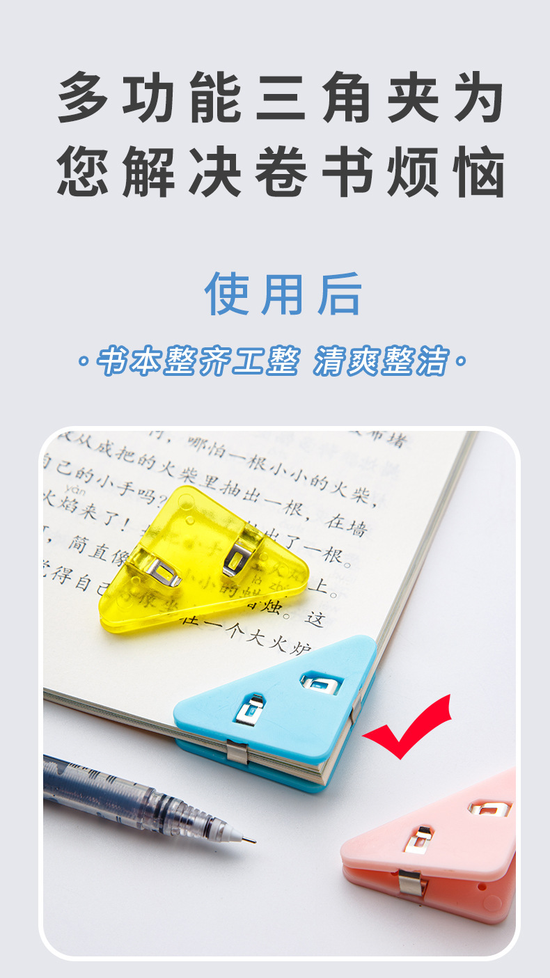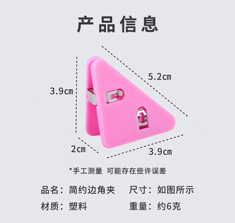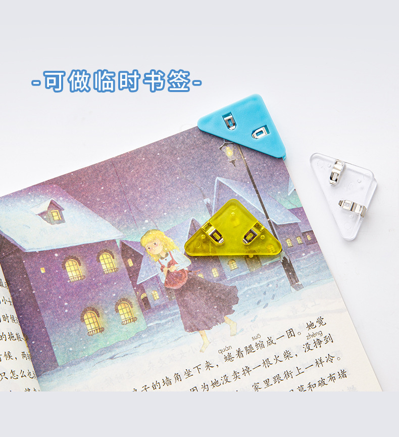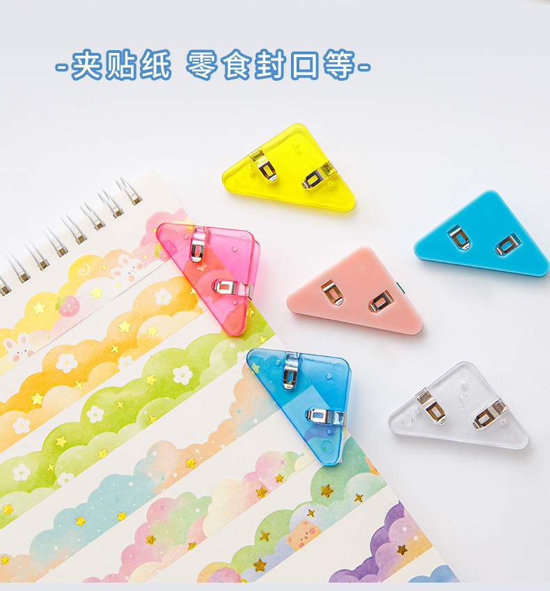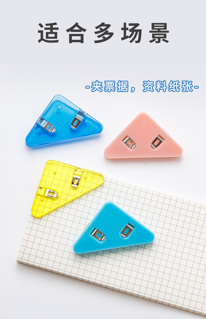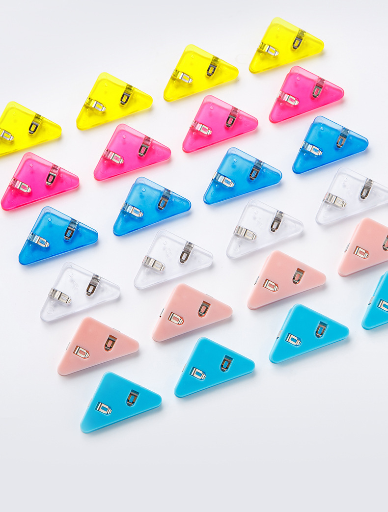 컬러 파일 삼각형 클립 간단 투명 책 옆 코너 클립 학생 시험 종이 클립 사무실 데이터 저장 클립