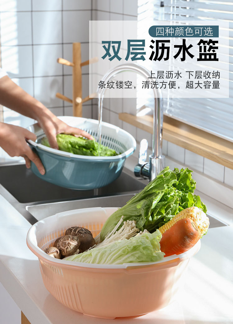 2 층 야채 세면대 배수 바구니 주방 가정용 플라스틱 과일 접시 거실 싱크대 배수 물 야채 바구니 세척 야채 바구니스토어 가기