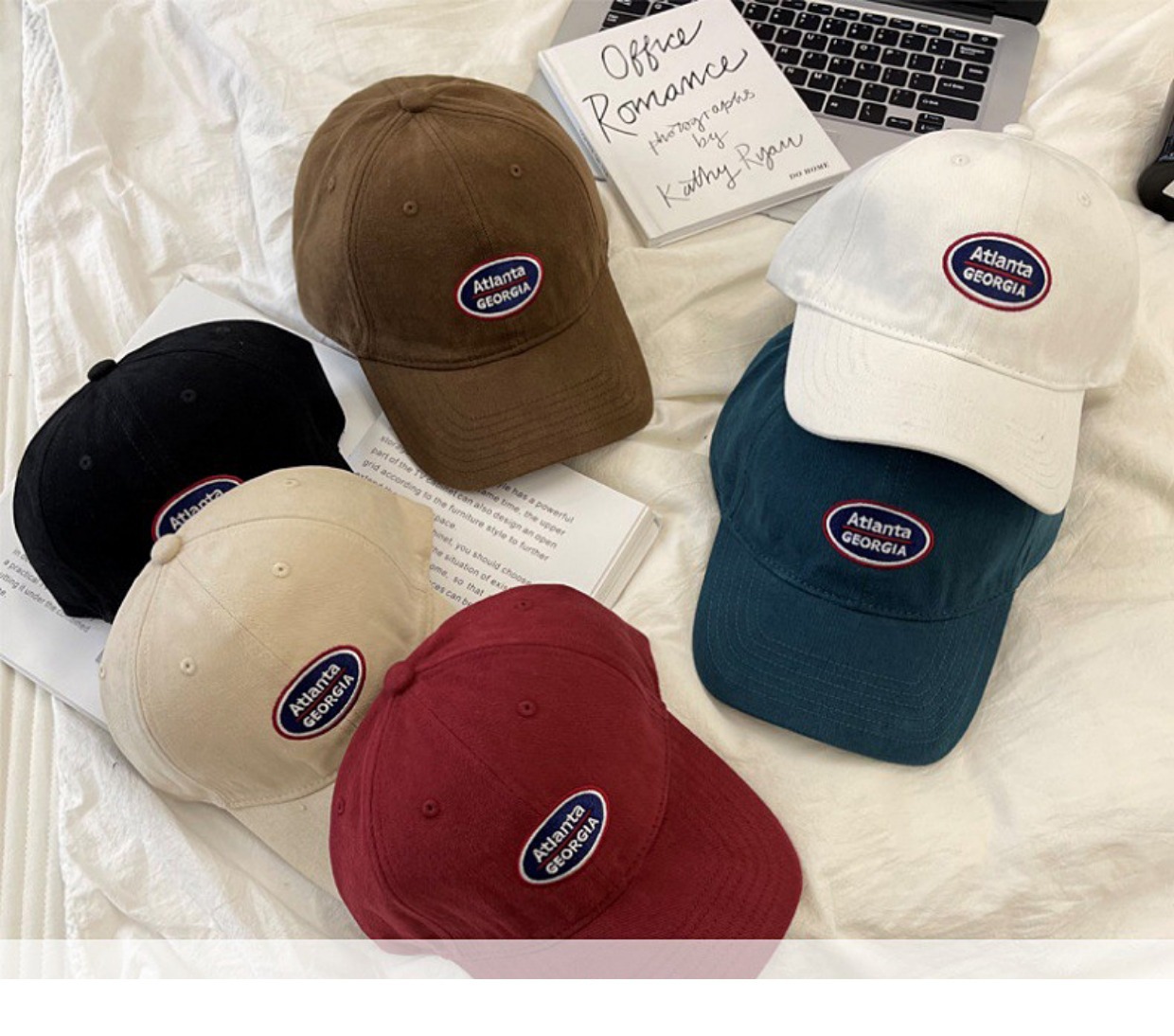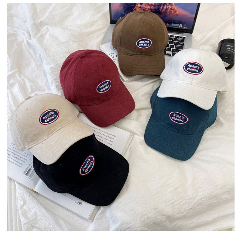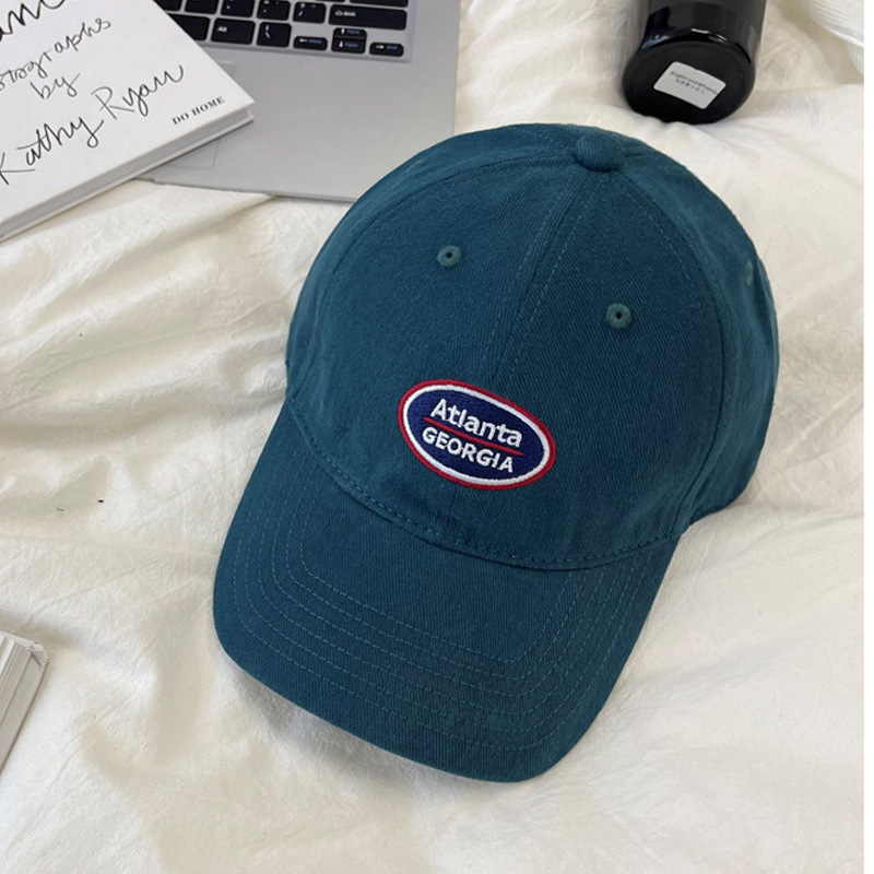 빨간 야구 모자 여성용 한국식 소프트 탑 레터 자수 자외선 차단제 태양 모자 남성용 캐주얼 올 매치 커플 모자스토어 가기