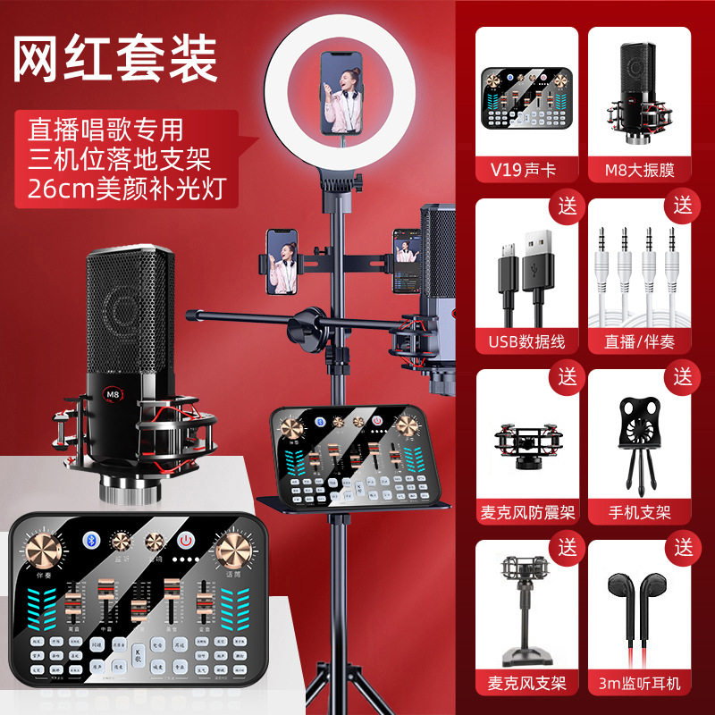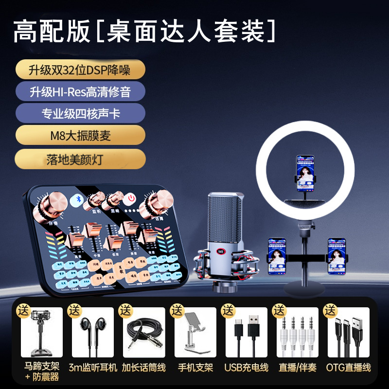 • 데스크탑 재능 세트 [M8 커패시터 밀 + 8 인치 뷰티 램프] 사운드 카드 완료 세트