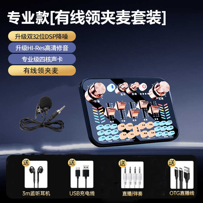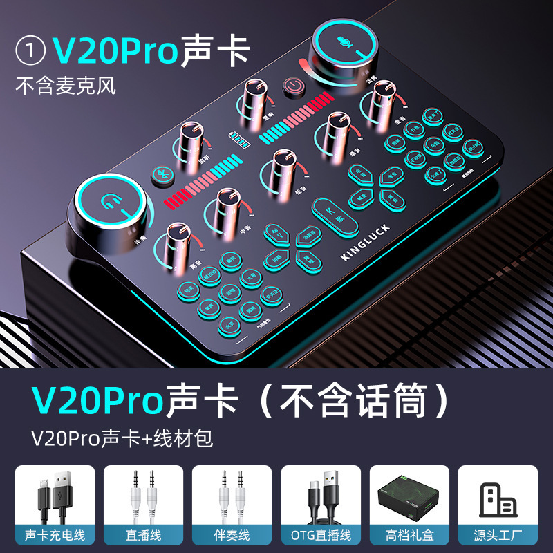 • [프로페셔널 에디션] V19 사운드 카드 + 무선 마이크 + 사운드 카드 액세서리 전체 세트★디버깅이 필요하지 않습니다. 액세서리 사진 참조