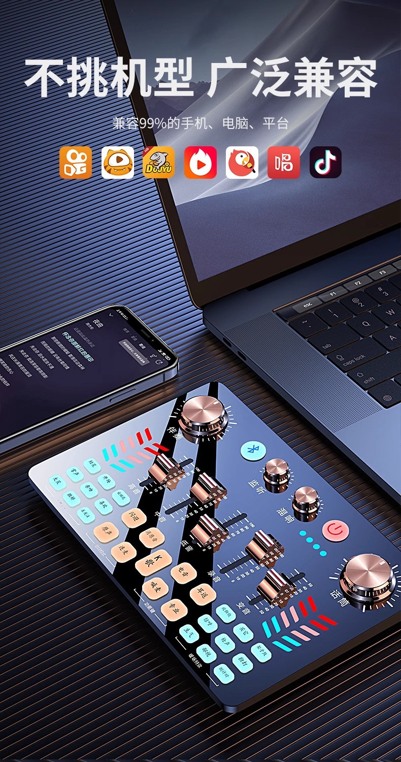 뜨거운 v19 사운드 카드 라이브 방송 장비 사운드 카드 노래 휴대 전화 컴퓨터 특수 트레몰로 앵커 마이크 도매