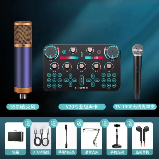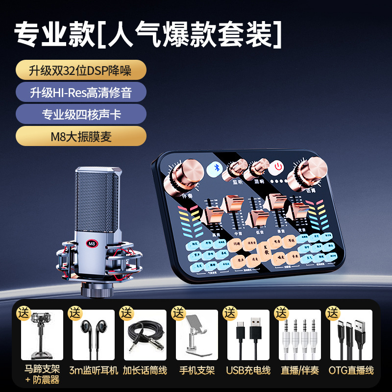 • [프로페셔널 에디션] V19 사운드 카드 + M8 대형 다이어프램 마이크 + 사운드 카드 액세서리 전체 세트★디버깅이 필요하지 않습니다. 액세서리 사진 참조