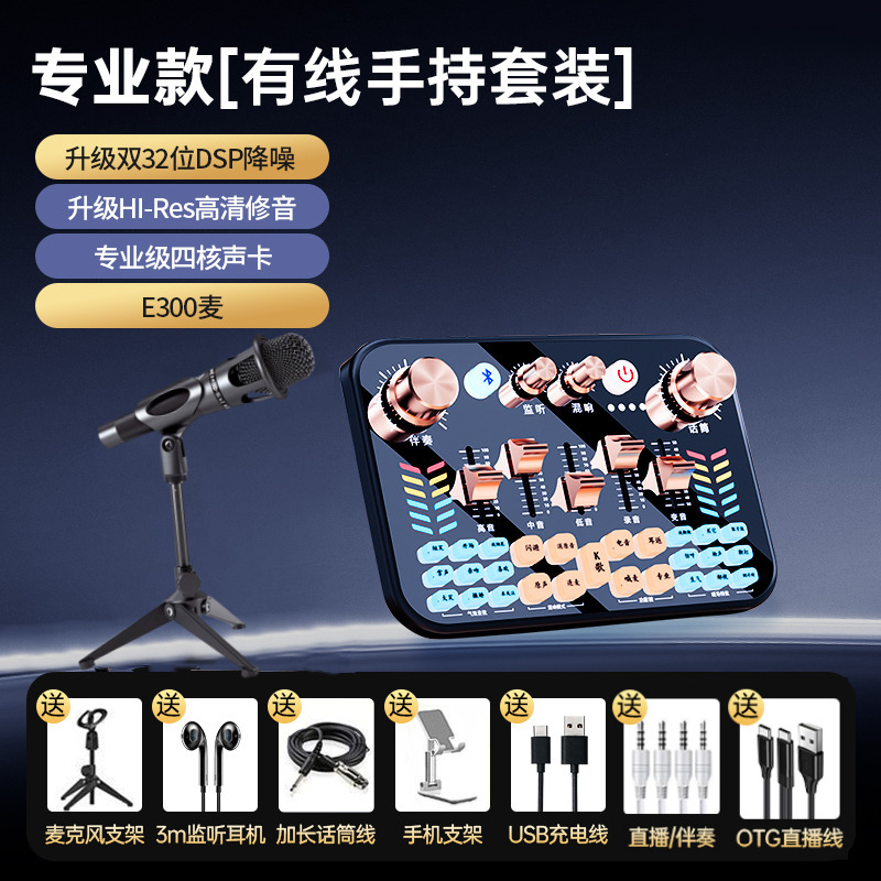 • [프로페셔널 에디션] V19 사운드 카드 + E300 마이크 + 사운드 카드 액세서리 전체 세트★디버깅이 필요하지 않습니다. 액세서리 사진 참조