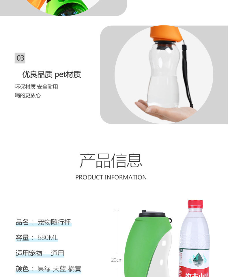 아마존 강아지 애완동물 외출용 물컵 고양이 음수기 휴대용 물통 680ML