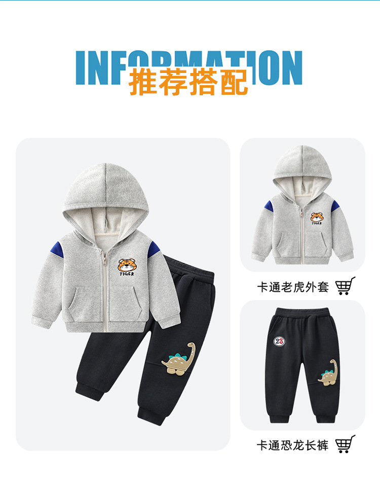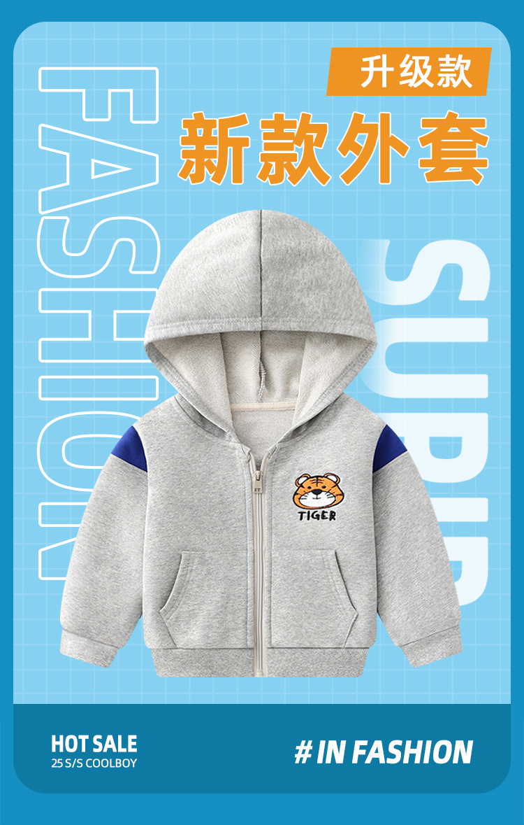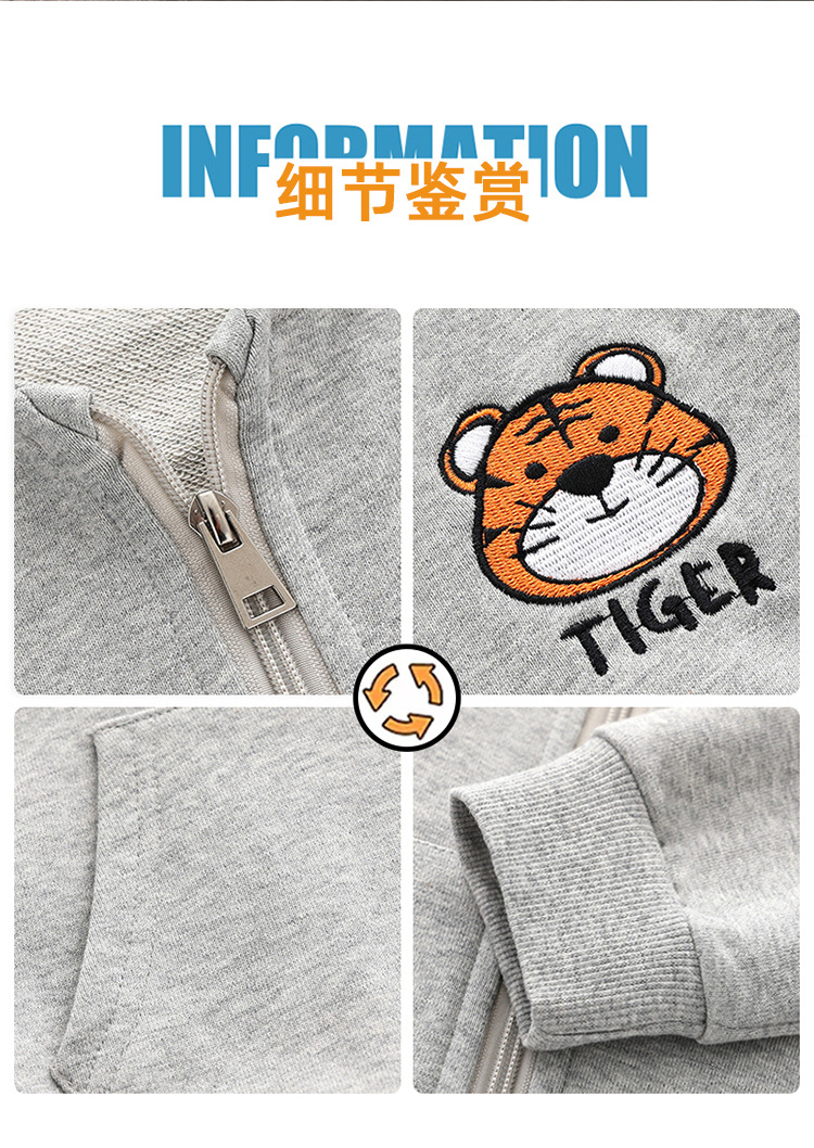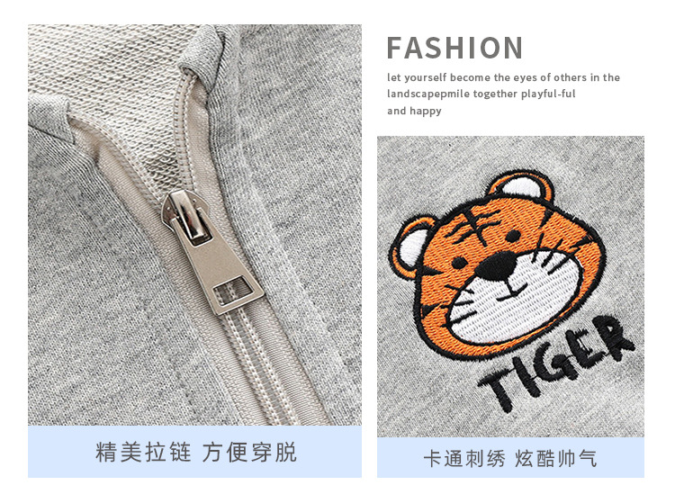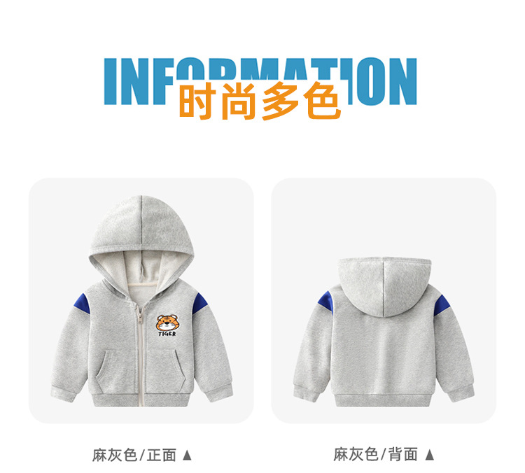어린이 만화 리틀 타이거 긴팔 후드 가디건 23 년 봄과 가을 새로운 지퍼 코트 어린이 세대의 머리카락