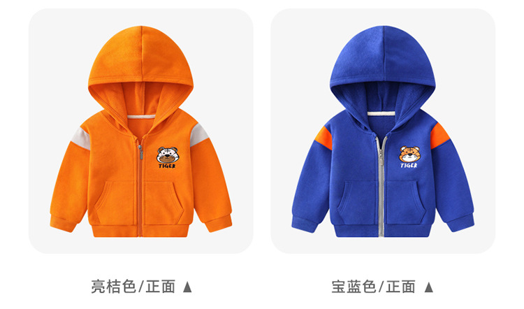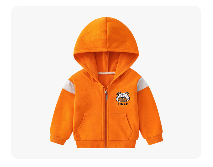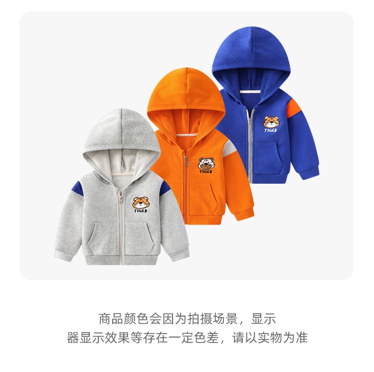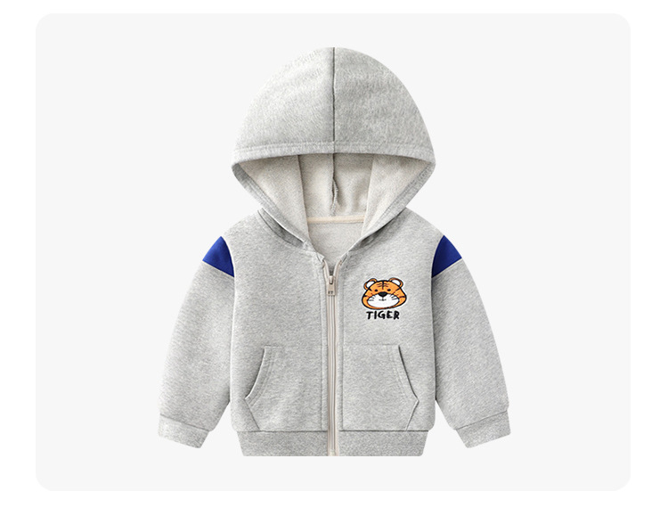 어린이 만화 리틀 타이거 긴팔 후드 가디건 23 년 봄과 가을 새로운 지퍼 코트 어린이 세대의 머리카락스토어 가기