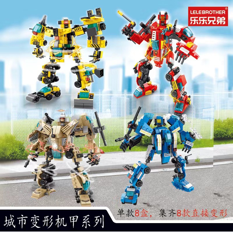 兼容乐高8合1变形机器人小颗粒积木工程消防军事警察儿童益智玩具