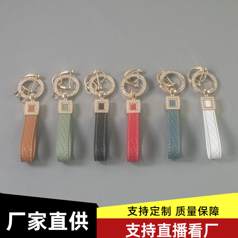 대외 무역 국경 진주 스퀘어 다이아몬드 열쇠 고리 패션 크리에이티브 백 커플 펜던트 열쇠 고리 작은 선물스토어 가기