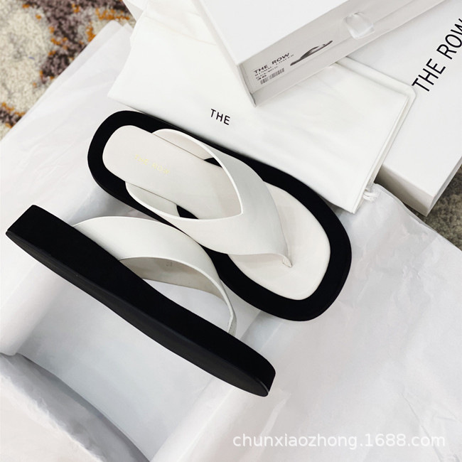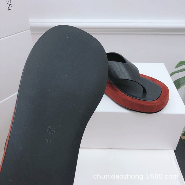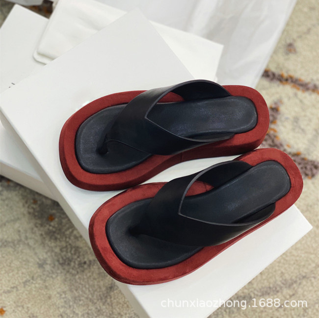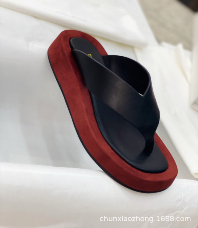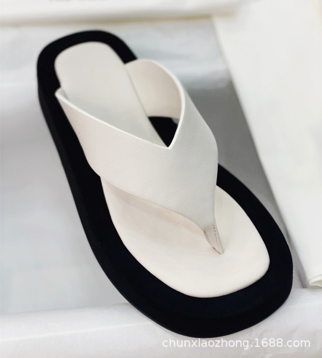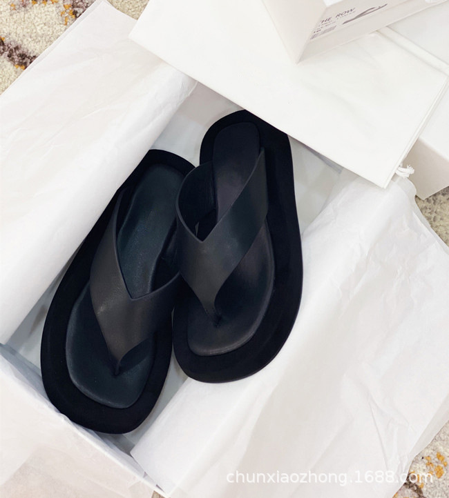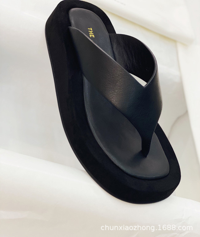 퓨어소스 니치 2024 여름 TR 두꺼운 밑창 슬리퍼 여성용 야외용 소가죽 쪼리 캐주얼 플랫 블랙 샌들스토어 가기