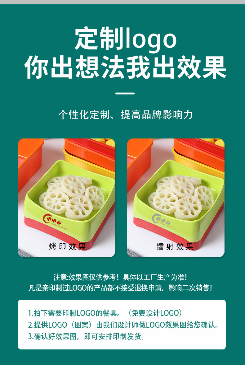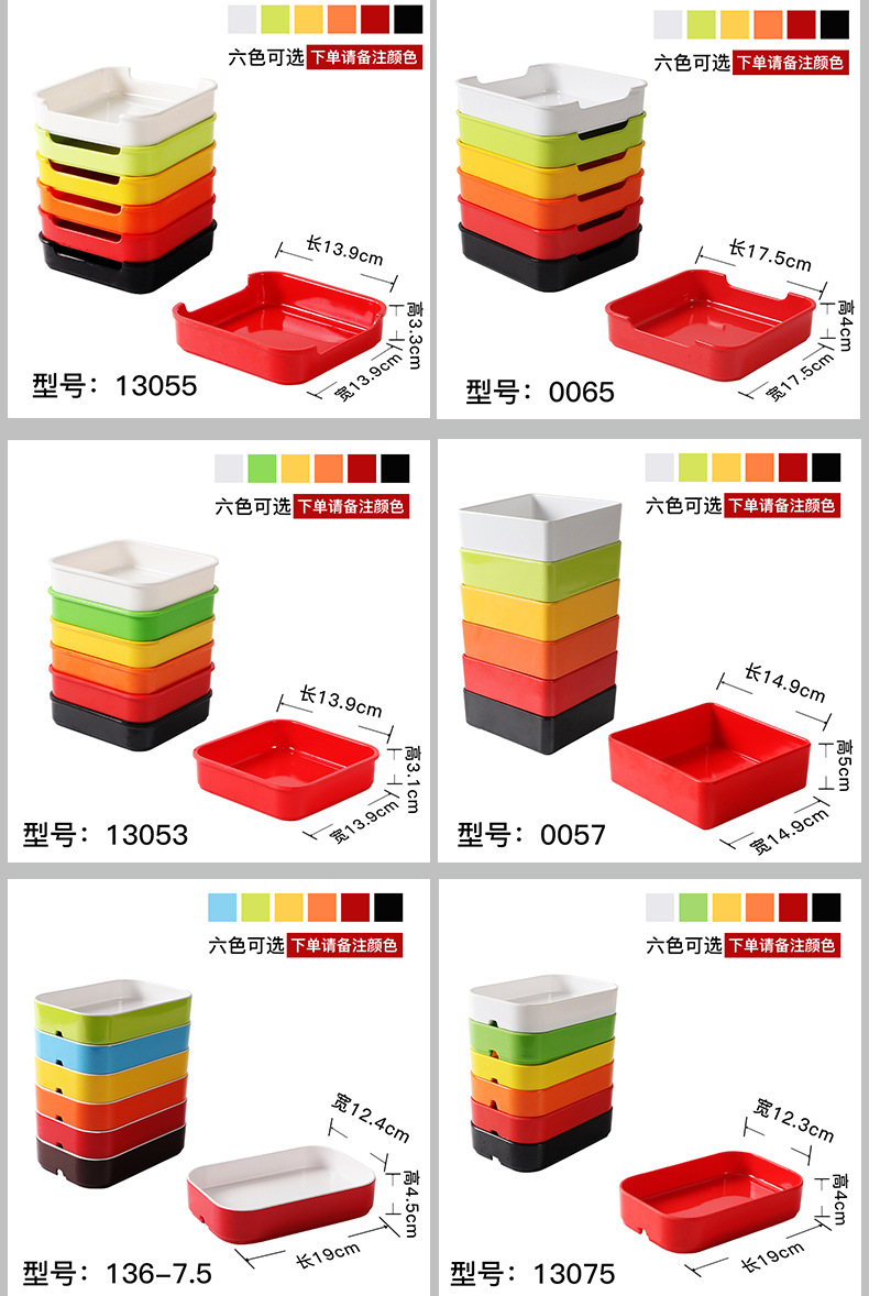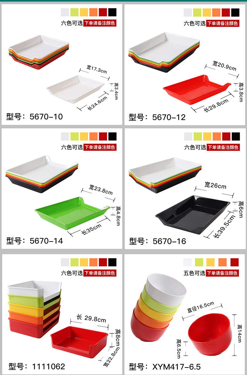멜라민 끈 냄비 레스토랑 식기 직사각형 셀프 서비스 바베큐 특수 접시 모조 도자기 상업 겹침 접시 도매스토어 가기