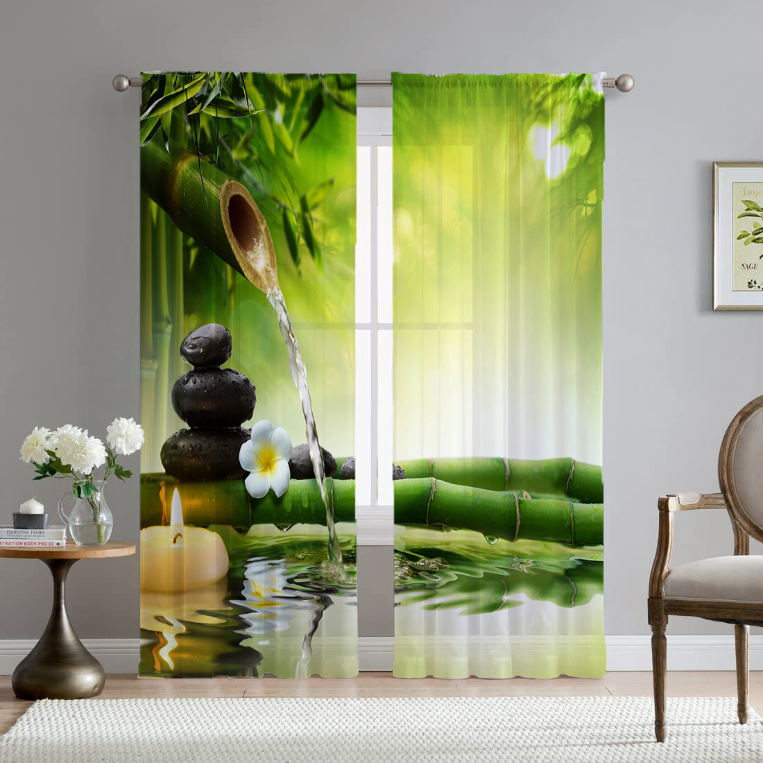 아마존 현대 미니멀리스트 커튼 북유럽 녹색 식물 홈 장식 투명 침투 스크린 커튼 창 화면 펀치 프리
