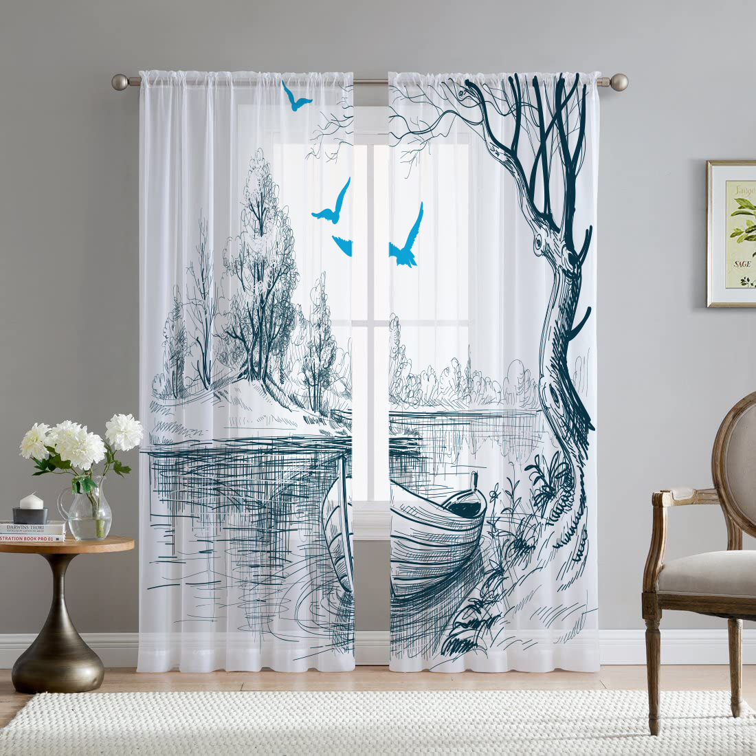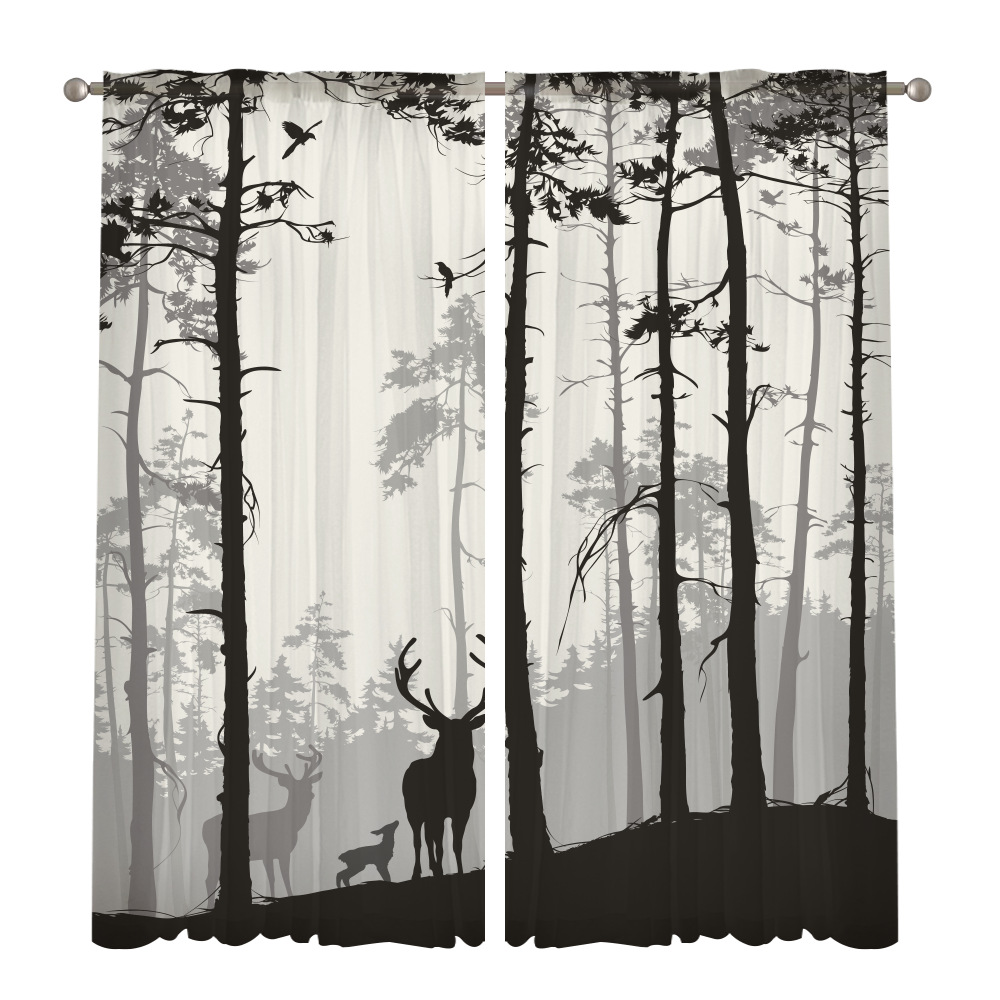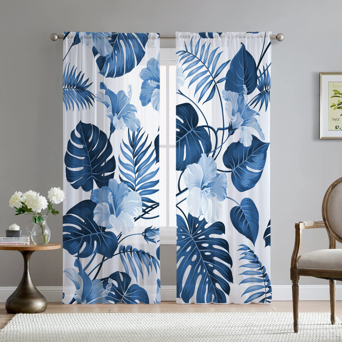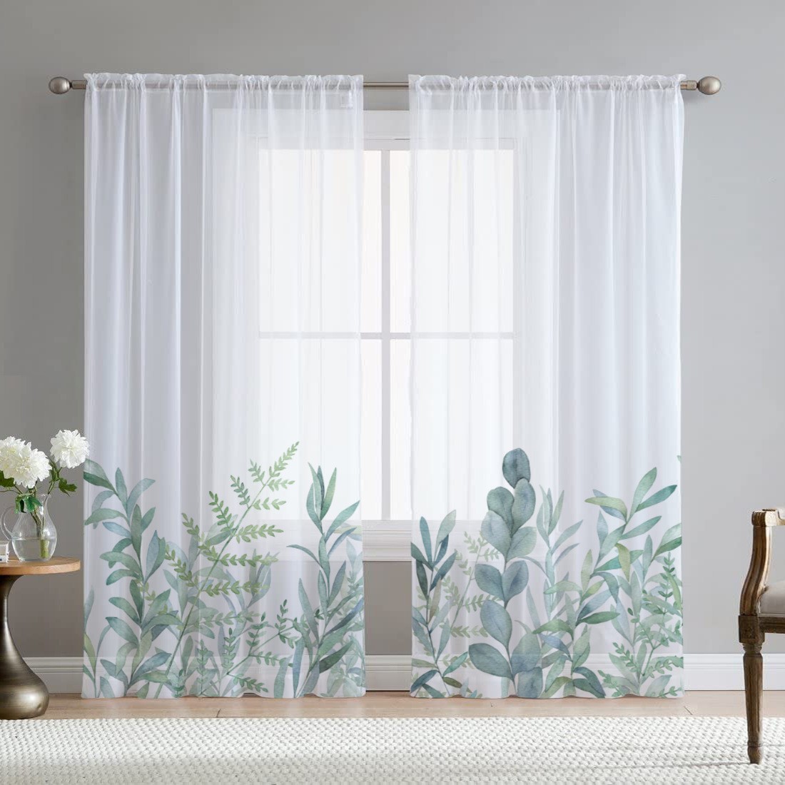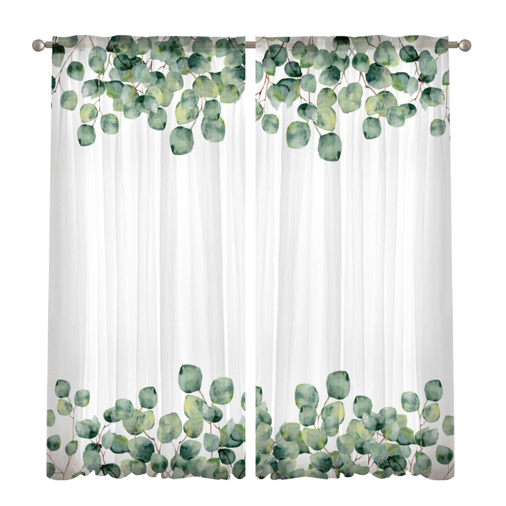 아마존 현대 미니멀리스트 커튼 북유럽 녹색 식물 홈 장식 투명 침투 스크린 커튼 창 화면 펀치 프리스토어 가기