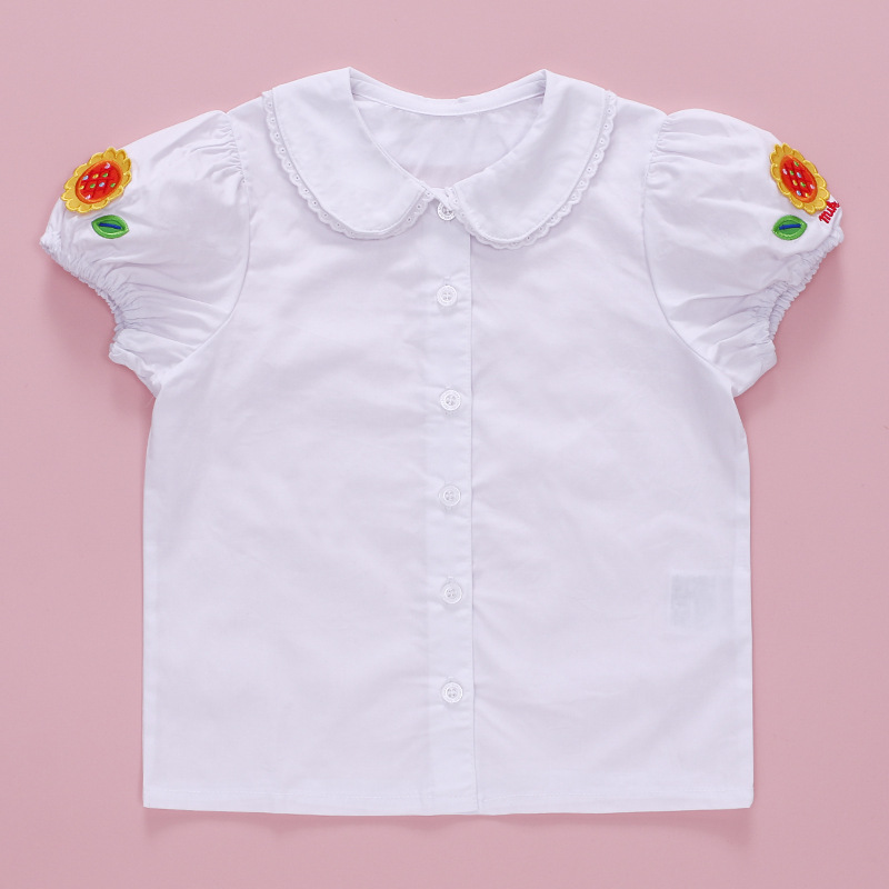 新款女童花边娃娃领短袖衬衣