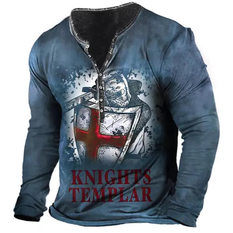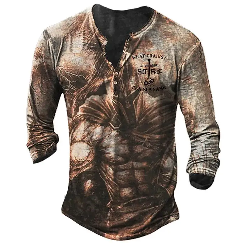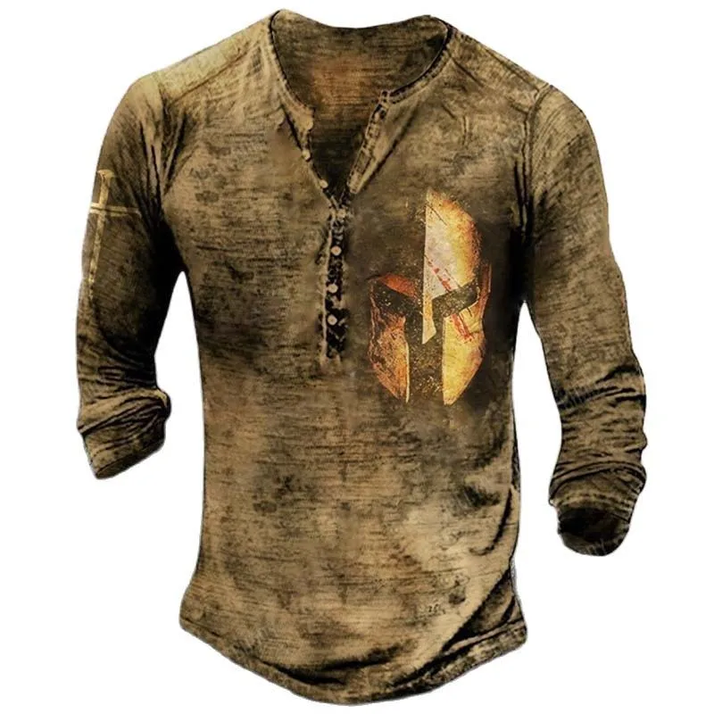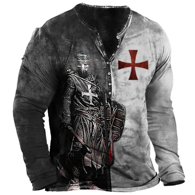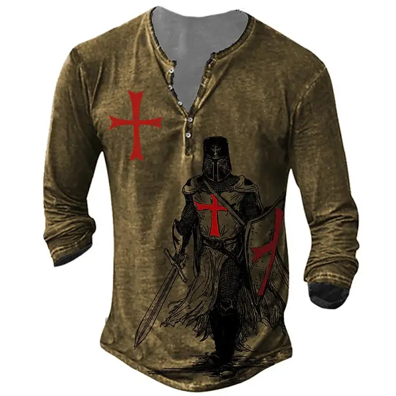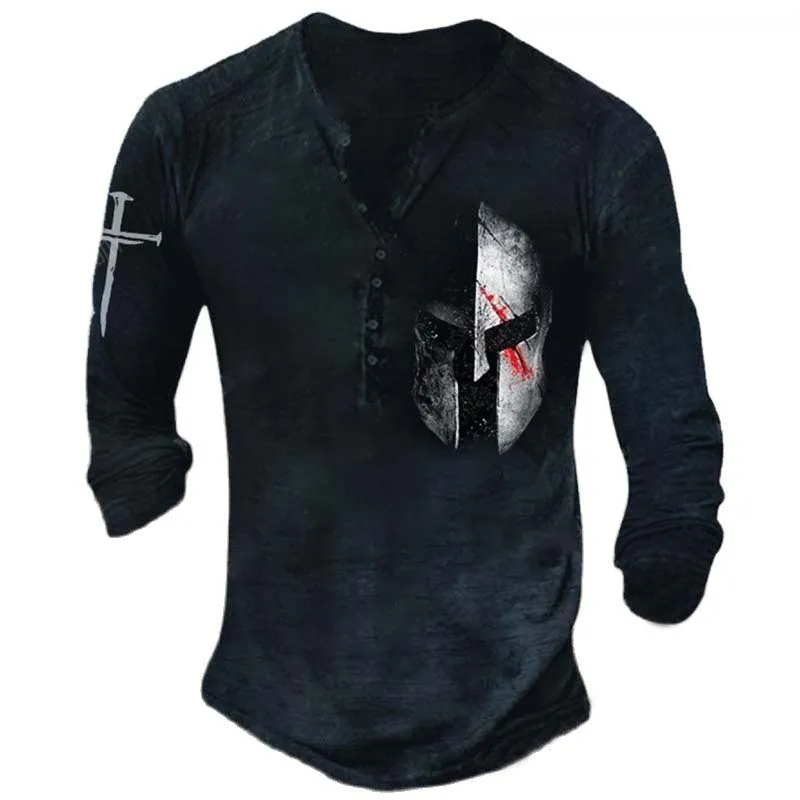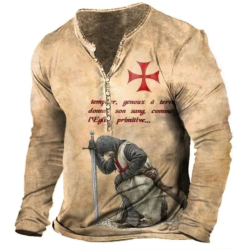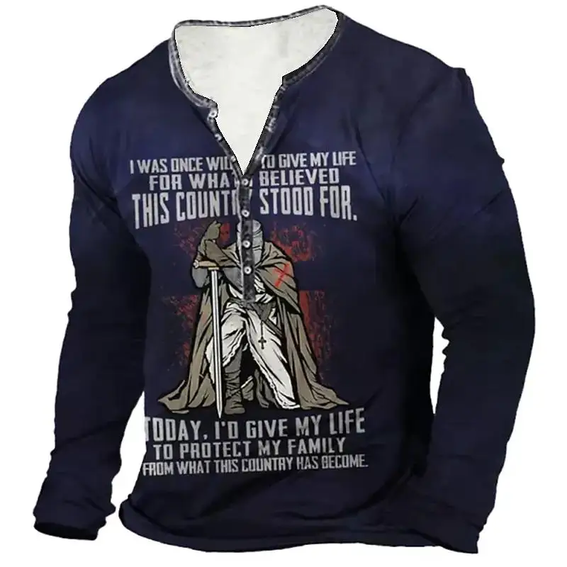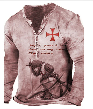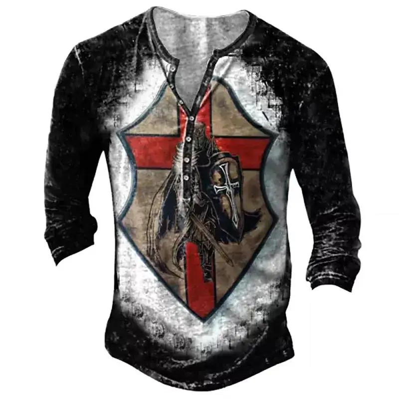 공장 다이렉트 AliExpress 핫 남성용 7 버튼 오픈 플래켓 버튼 티셔츠 디지털 인쇄 남성용 긴팔 티셔츠
