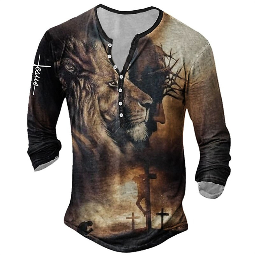 공장 다이렉트 AliExpress 핫 남성용 7 버튼 오픈 플래켓 버튼 티셔츠 디지털 인쇄 남성용 긴팔 티셔츠스토어 가기