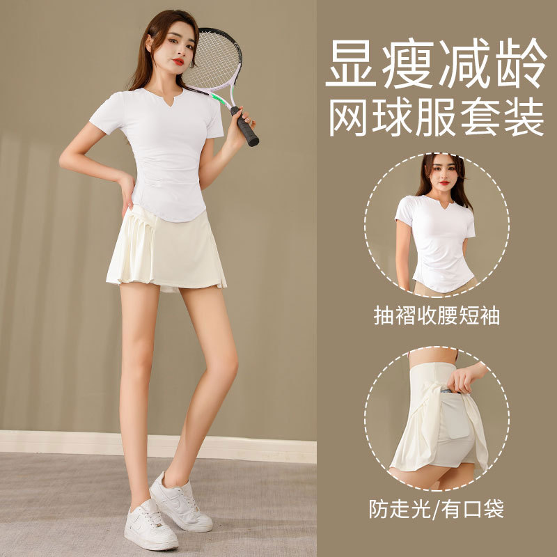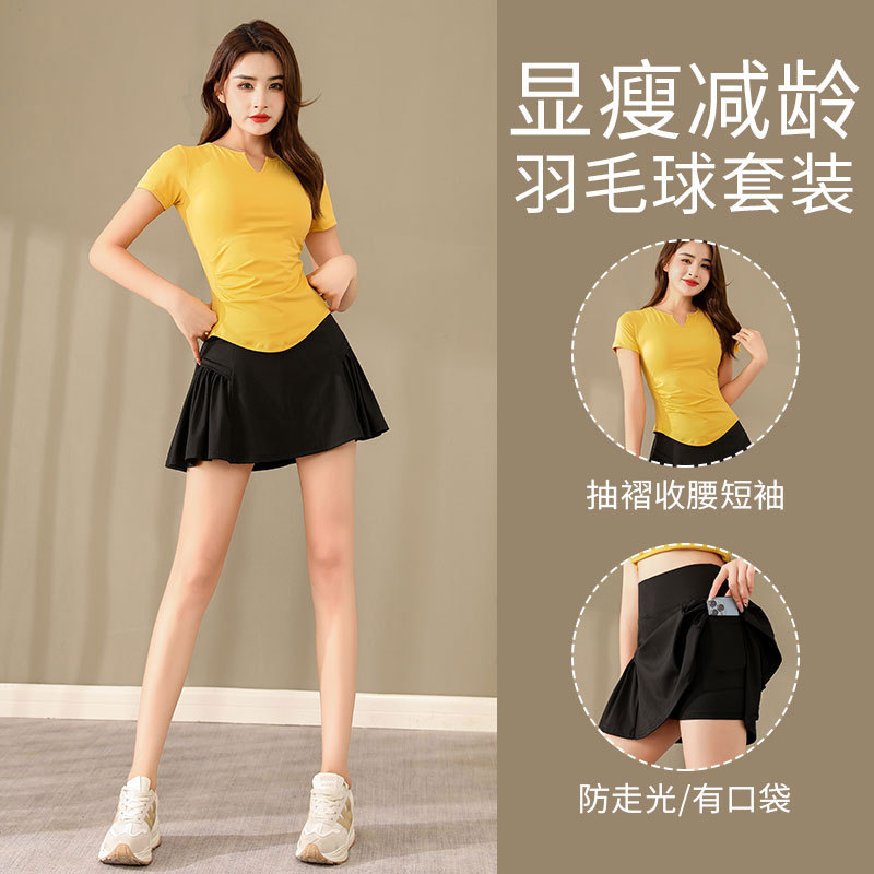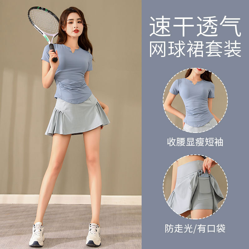 배드민턴 여성 의류 스포츠 세트 여성의 여름 테니스 스커트 실행 스커트 체육관 스커트 요가 의류 속건 의류스토어 가기