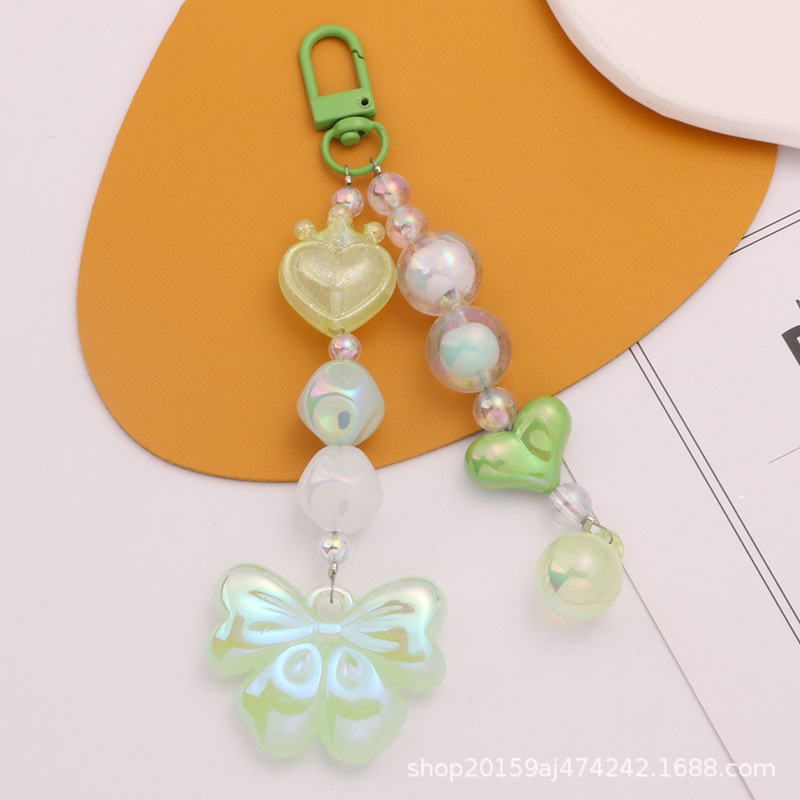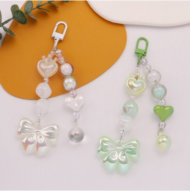 새로운 전기 도금 아크릴 컬러 활 자동차 열쇠 고리 펜던트 작은 신선한 사탕 색 구슬 가방 액세서리