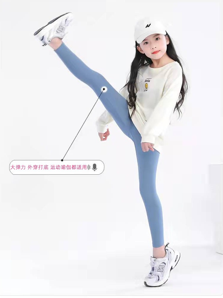 여자 단색 상어 바지 봄과 가을 얇은 겉옷 서양식 스포츠 레깅스 중형 및 대형 어린이 스트레치 여자 요가 바지