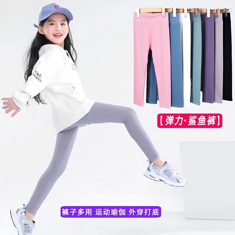 여자 단색 상어 바지 봄과 가을 얇은 겉옷 서양식 스포츠 레깅스 중형 및 대형 어린이 스트레치 여자 요가 바지스토어 가기