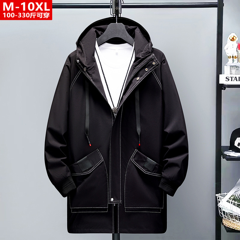 봄과 가을 트렌디한 홍콩 스타일의 남성 핸섬 모든 매치 후드 코트 통통한 남성 플러스 플러스 사이즈 루즈한 중간 길이 재킷