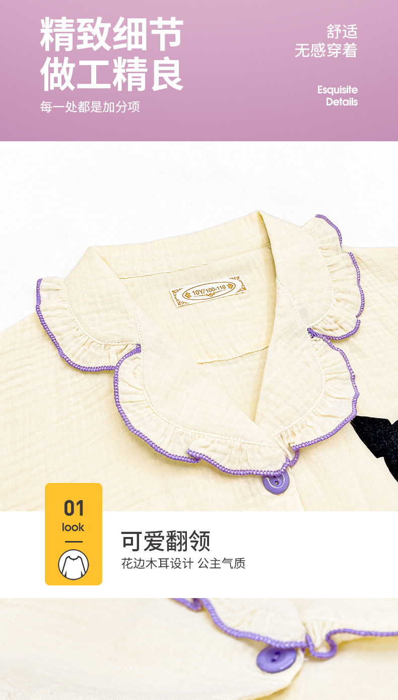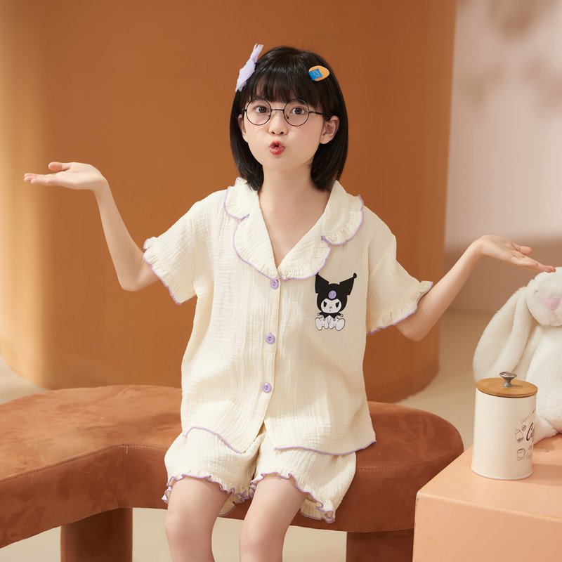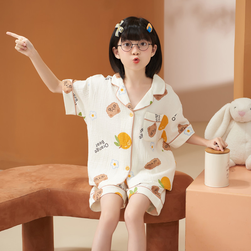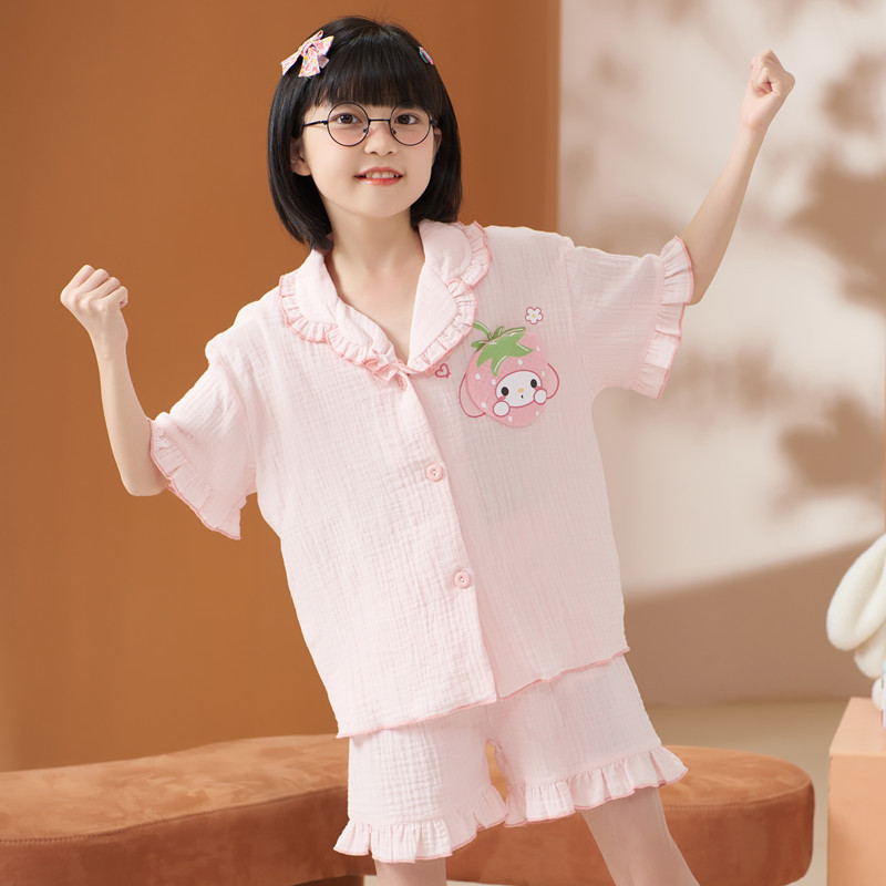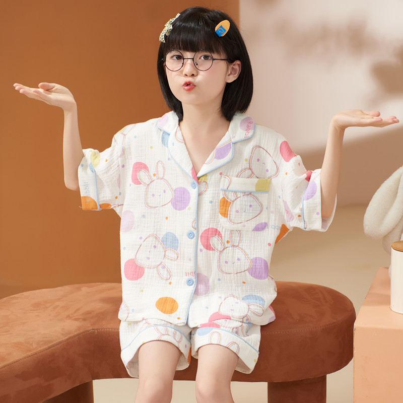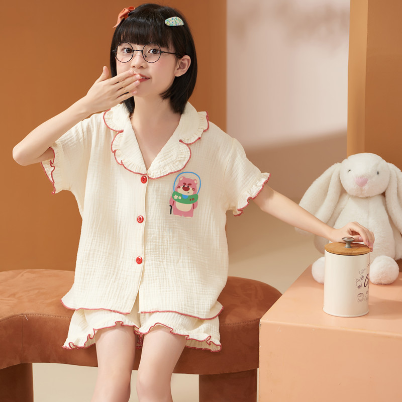소녀를위한 어린이 잠옷 여름 새로운 순면 얇은 면사 반팔 어린이 12 세 여아 가정복