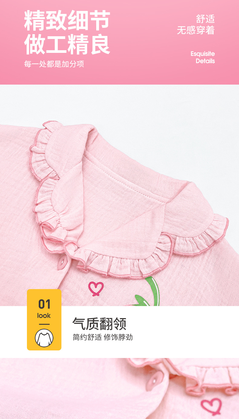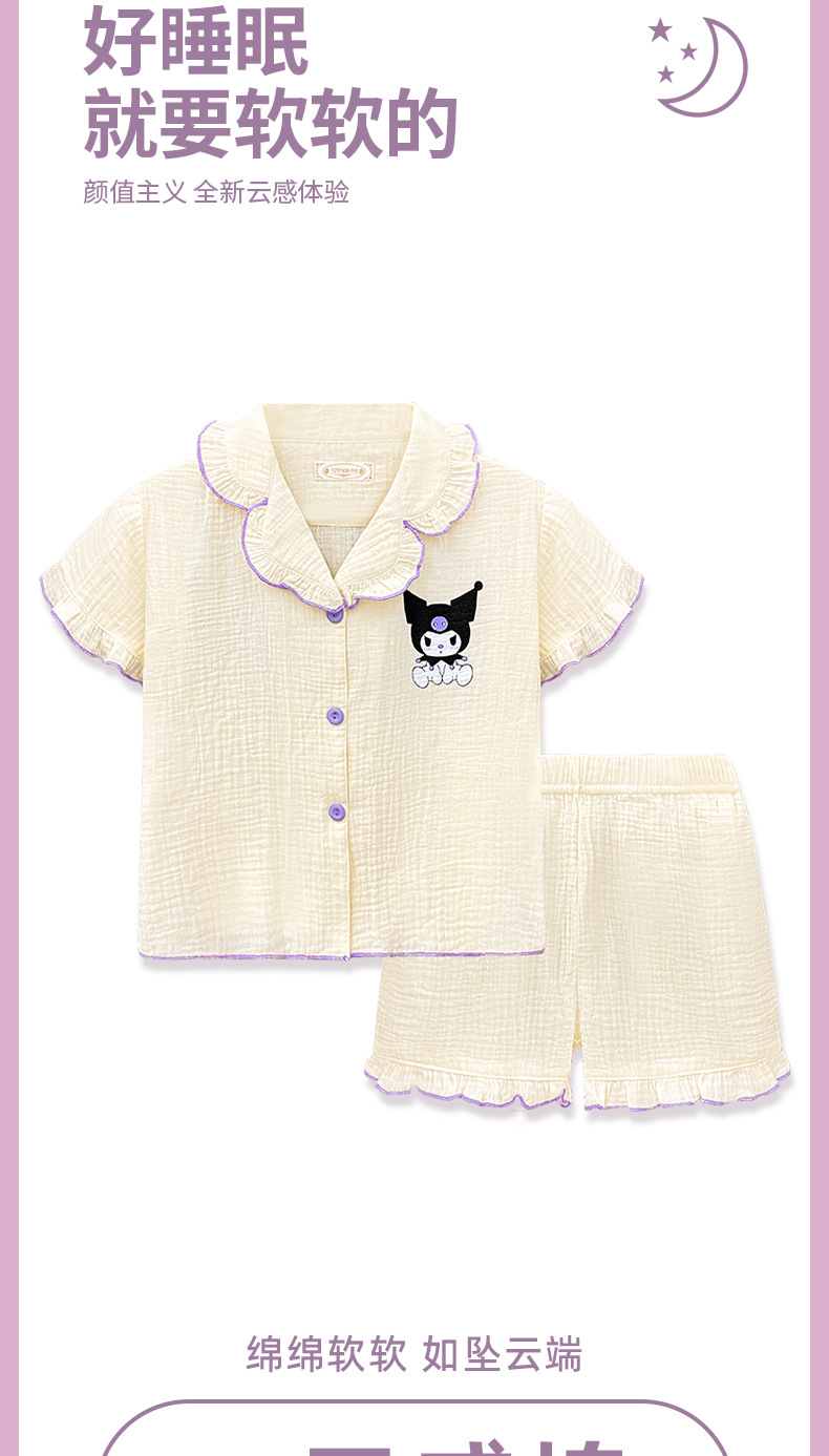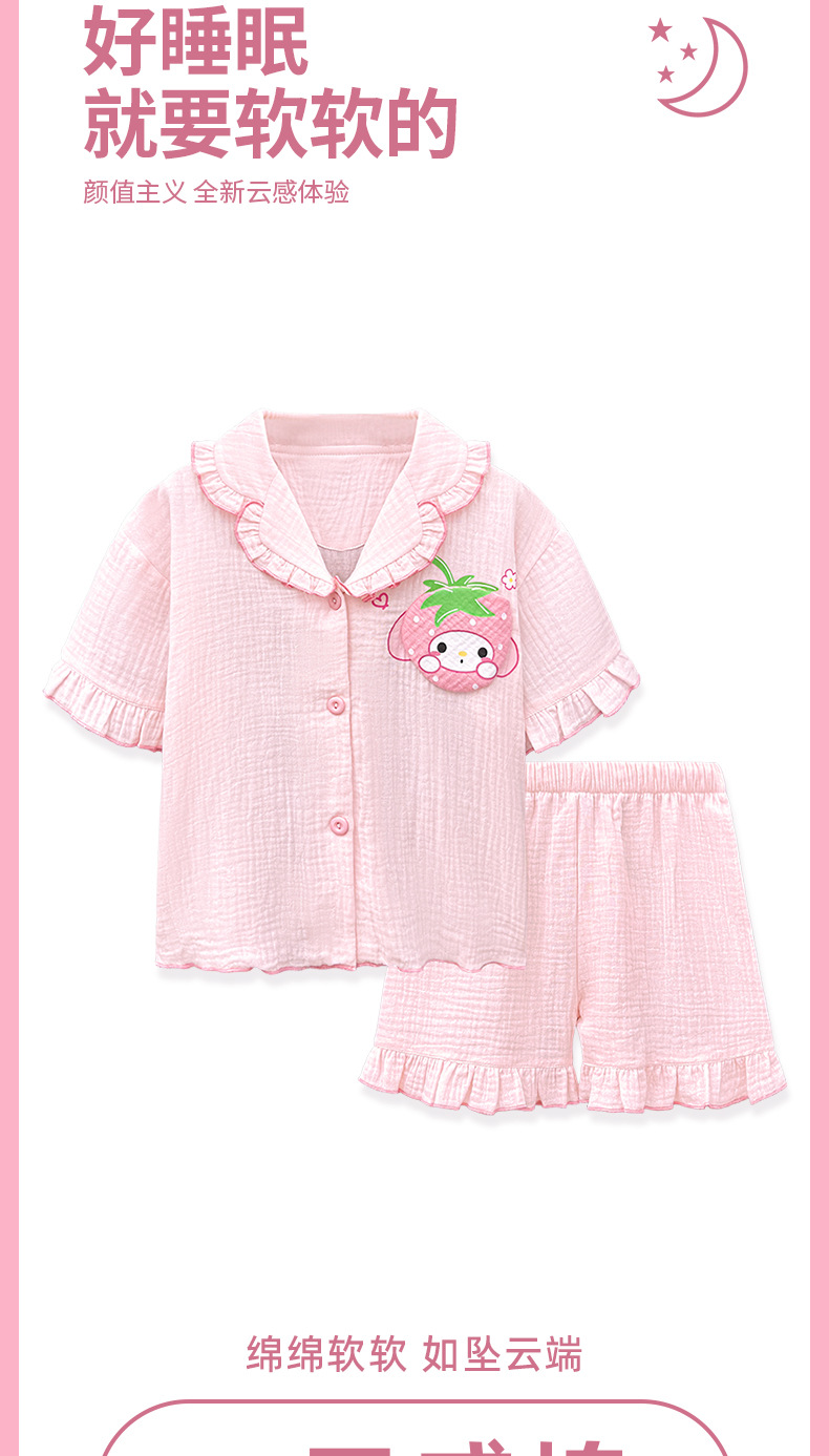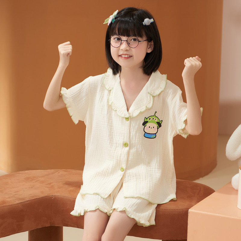 소녀를위한 어린이 잠옷 여름 새로운 순면 얇은 면사 반팔 어린이 12 세 여아 가정복스토어 가기