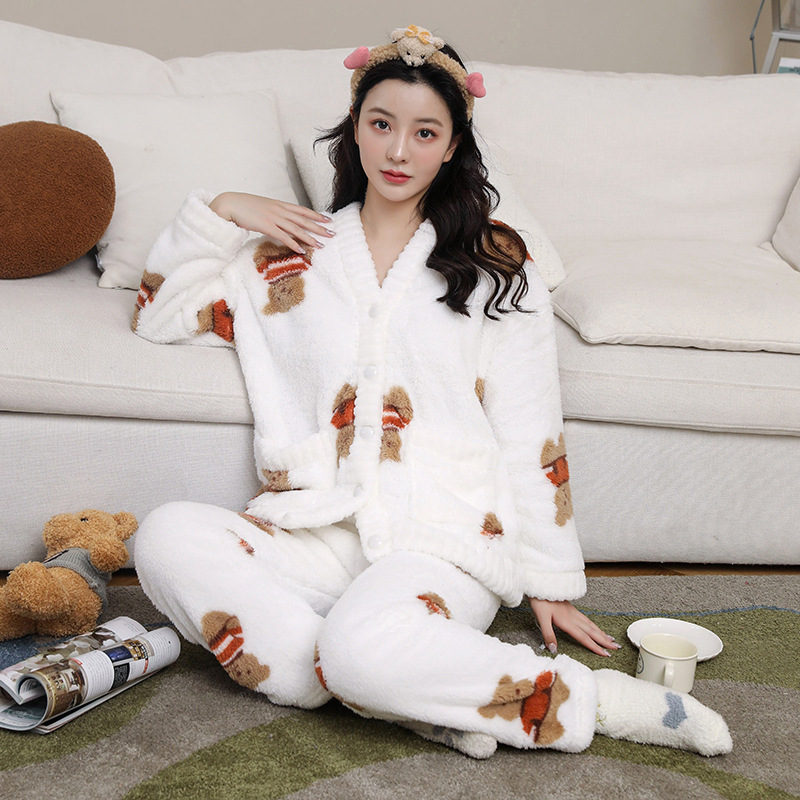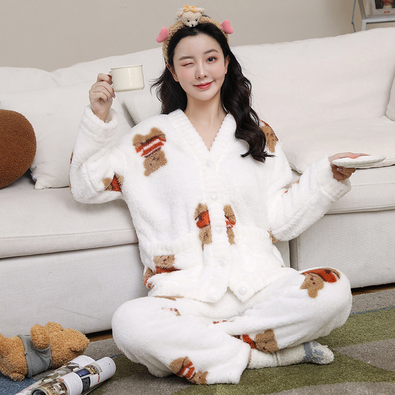 잠옷 여자의 겨울 산호 양털 겨울 기모 두꺼운 가을 겨울 귀여운 따뜻한 달콤한 봉제 외부 가정 옷
